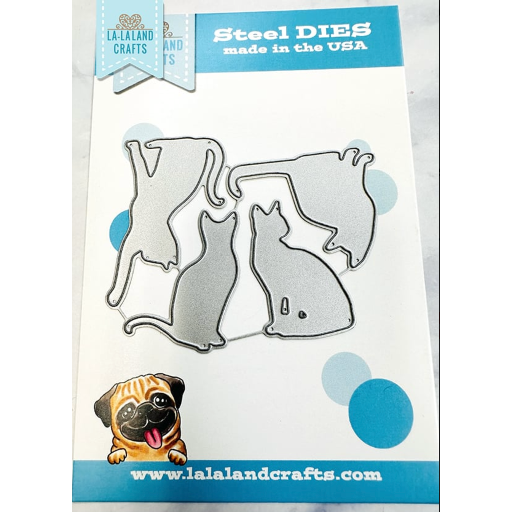 The La-La Land Crafts Cats Dies set includes four silhouette cats, making it a fantastic choice for cat lovers and craft enthusiasts alike. This exclusive steel die set, produced by La-La Land Crafts, is made in the US and offers high-quality, precise cuts. Compatible with most tabletop die-cutting machines like the Big Shot, Gemini, Crossover, and Vagabond, this set can be used to cut through various materials such as cardstock, thin chipboard, vellum, felt, cork, acetate, and more. It's perfect for creating unique decorations, card embellishments, and other craft projects.