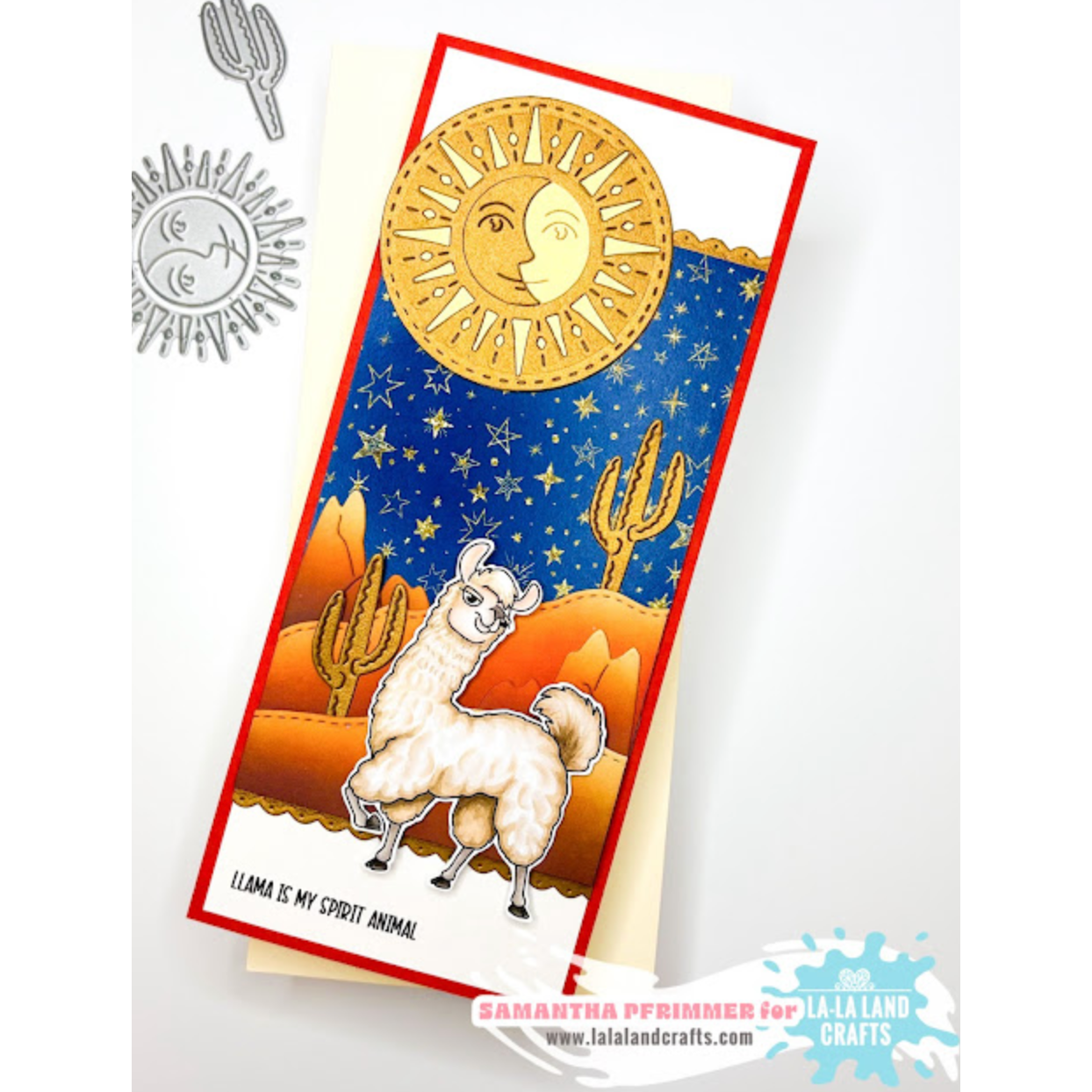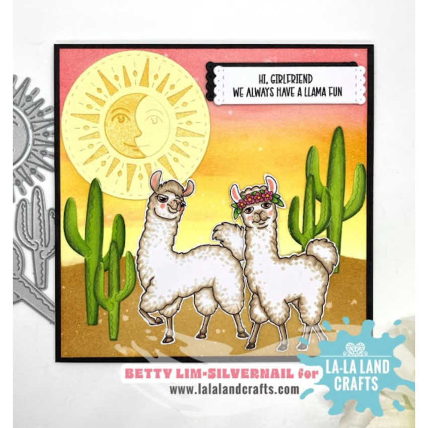 La-La Land Crafts Celestial Sun Dies features a vintage-style circular design with a split face that can represent either the sun or the moon. Includes a circular halo of triangles and dots to create radiant sun rays around the circle die. The center line allows for creating full or half-moon looks, making it perfect for celestial and landscape scenes. Compatible with most leading die cutting machines.