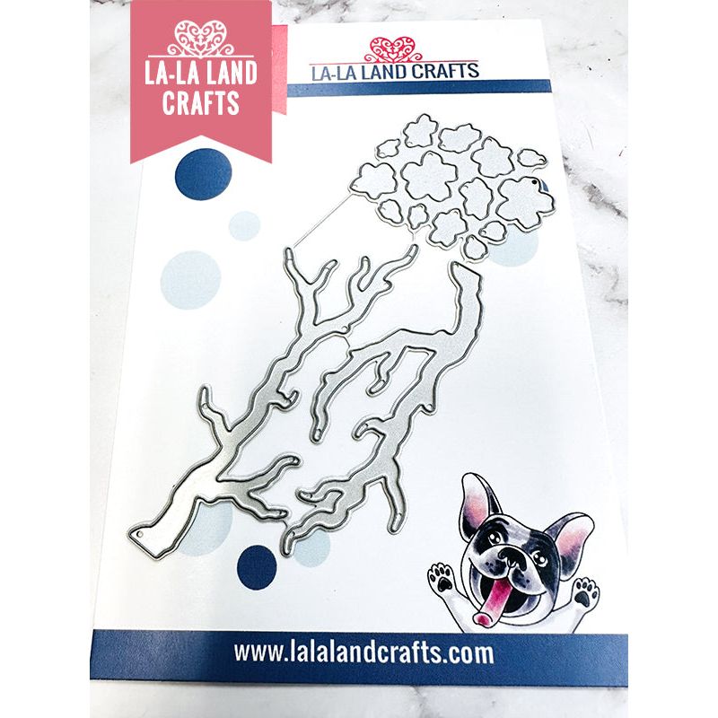 La-La Land Crafts Cherry Blossom Branches Dies is a set of three dies featuring two delicate branching designs and a large confetti die with various sizes of cherry blossom flowers.