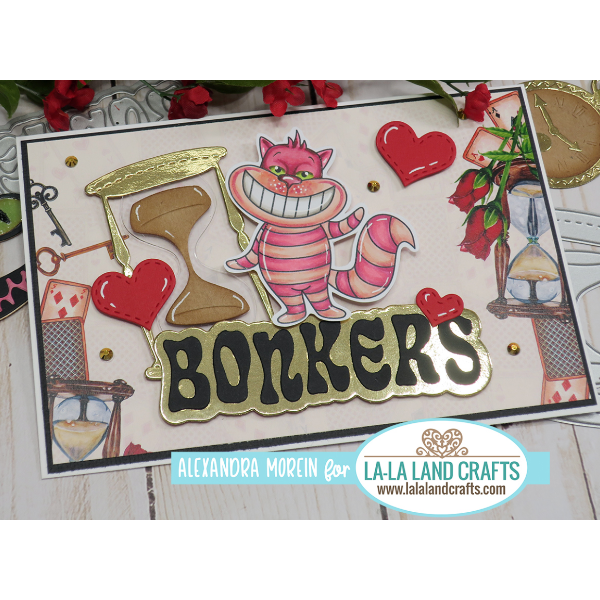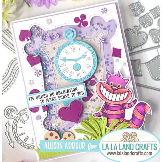 The La-La Land Crafts Clear Stamps Entirely Bonkers CL133 is a stamp set inspired by Alice in Wonderland's Cheshire Cat. The stamp set features original artwork created and copyrighted by La-La Land Crafts and is perfect for cardmaking, scrapbooking, planners, and other crafts. The stamp set measures 4 x 6 inches and is made in the USA from the highest quality photopolymer, which is latex-free, non-toxic, and resists yellowing. This means that the stamp set is safe to use and will last a long time without deteriorating in quality. The stamps are designed to be colored, so you can customize them with your favorite coloring techniques, such as markers, watercolors, or colored pencils. With this stamp set, you can let your creativity run wild and create unique and beautiful crafts that showcase the mischievous and mysterious nature of the Cheshire Cat.