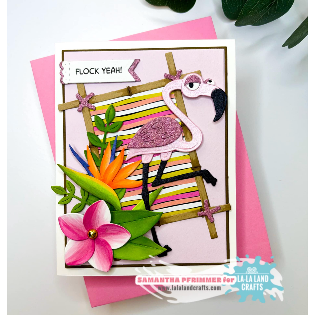 Build your own flamingo with this delightful die set from La-La Land Crafts. This fun set includes all the separate parts needed to layer and assemble your very own flamingo. You'll find dies for the legs, wings, feathers, face, and body, allowing you to customize and create a unique bird for your crafting projects. Perfect for adding a touch of summer charm to your cards, scrapbooks, and other creative endeavors!