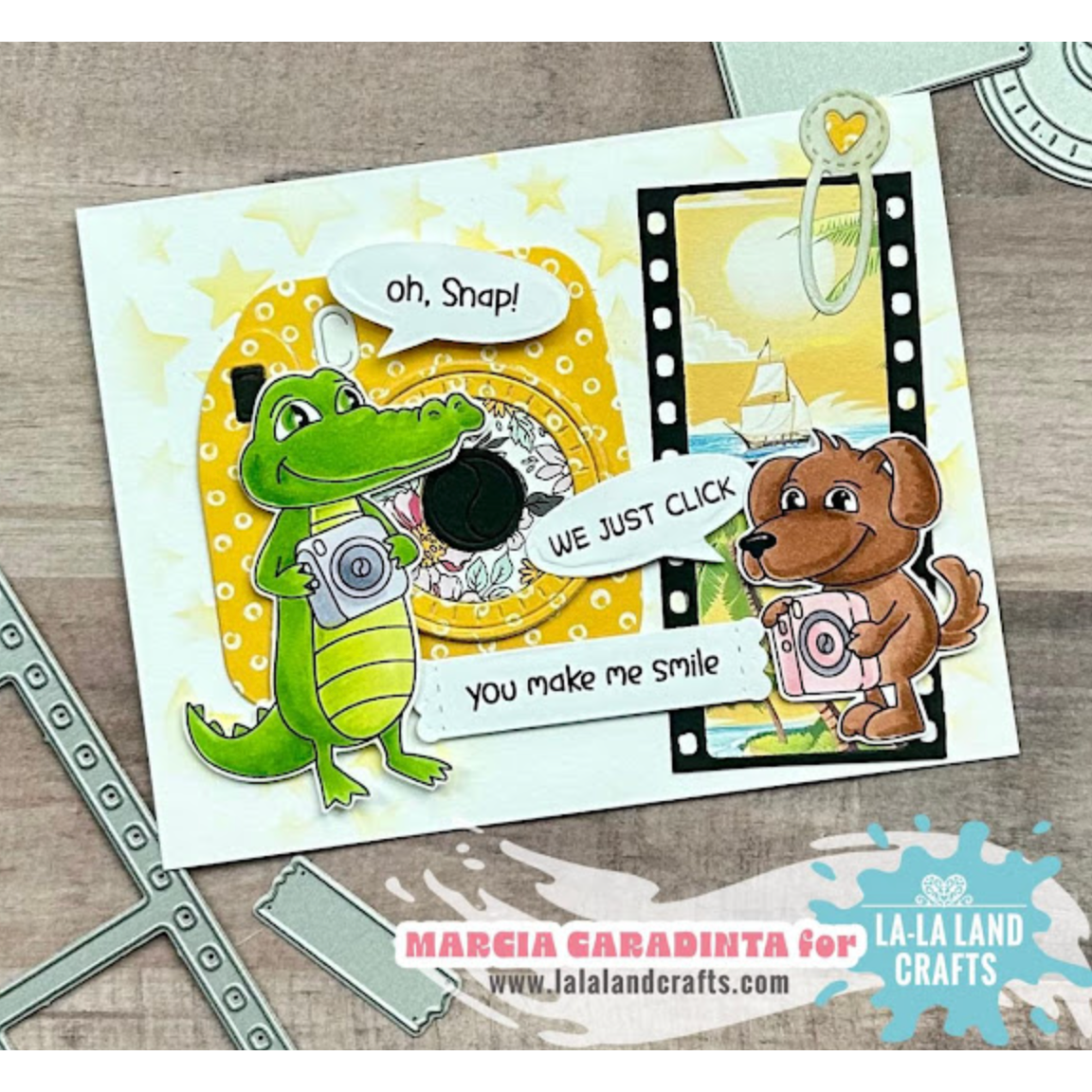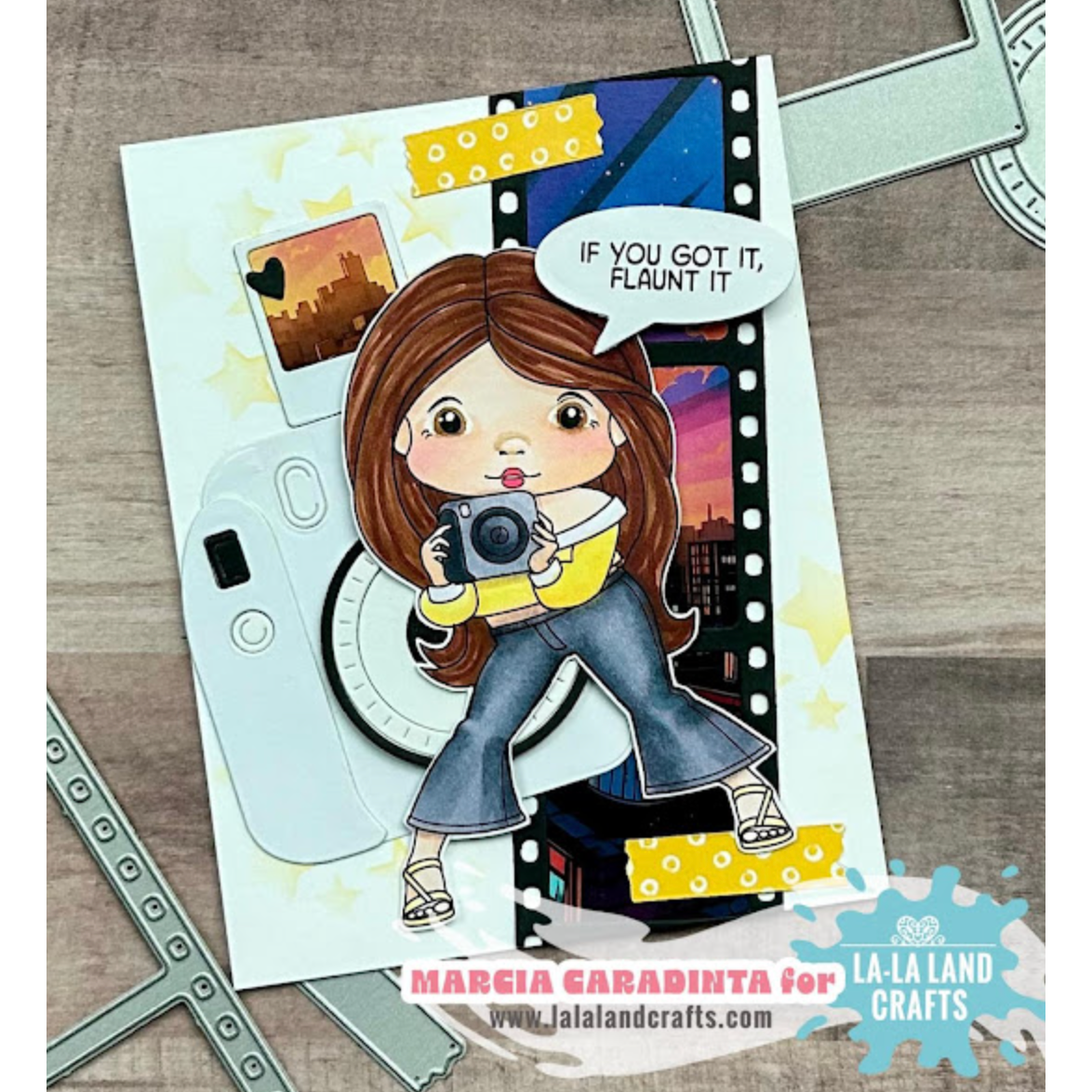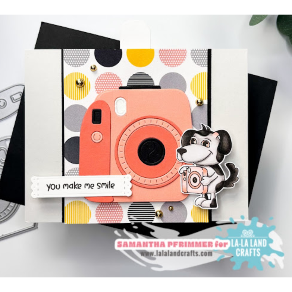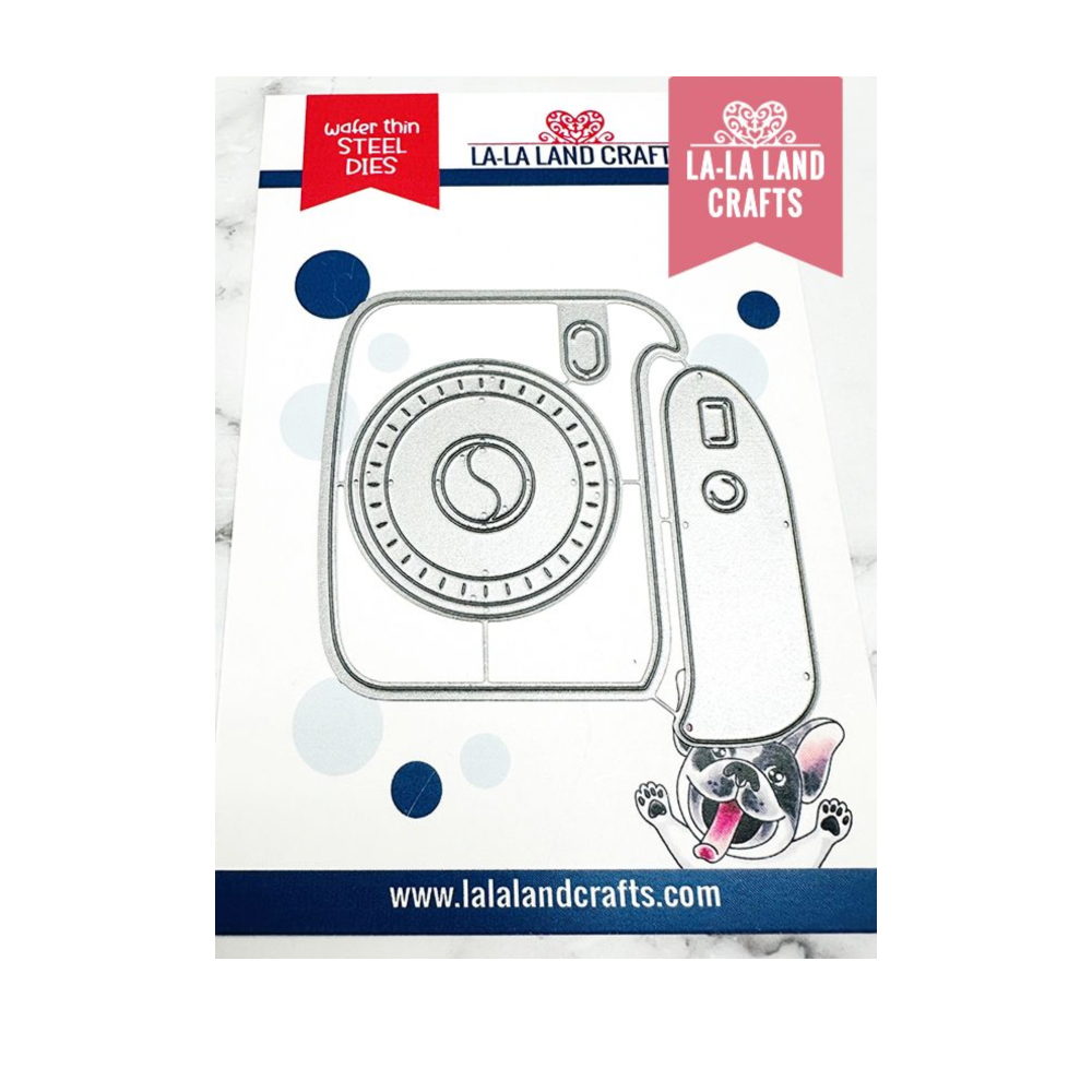 La-La Land Crafts Instant Camera Dies includes all the pieces needed to assemble a fun, layered instant camera. Perfect for adding a playful, retro touch to your cards, scrapbook pages, and travel-themed projects. Compatible with most leading die cutting machines.