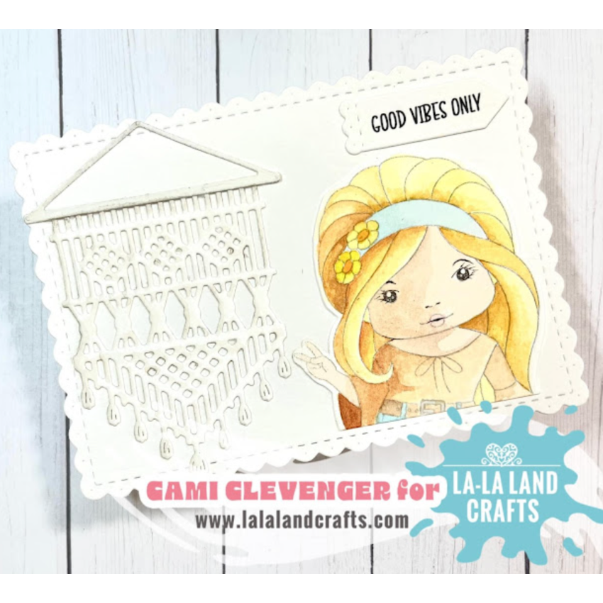 La-La Land Crafts Macrame Hanging Die features a detailed wall hanging design complete with knotted textures and tassels. This stylish accent is perfect for adding a boho touch to your cards, journals, or mixed media projects. Compatible with most leading die cutting machines.