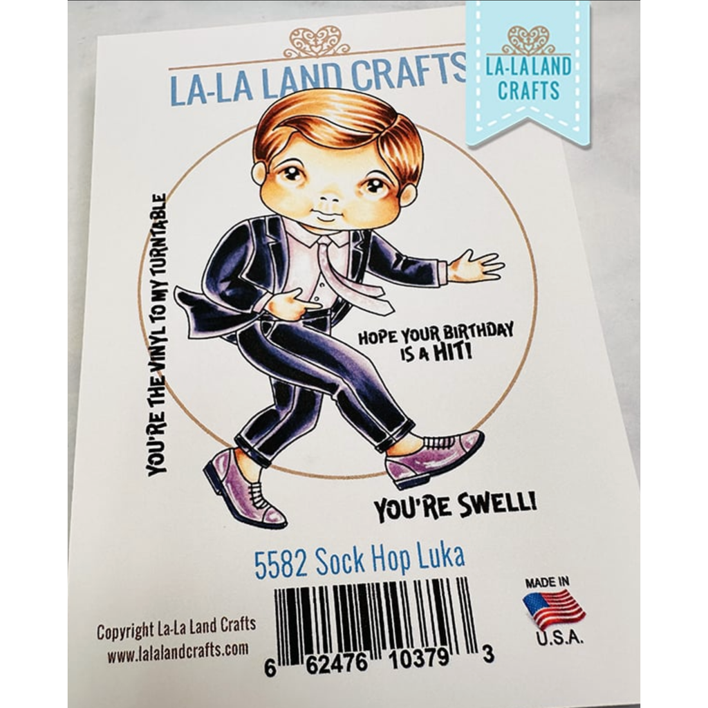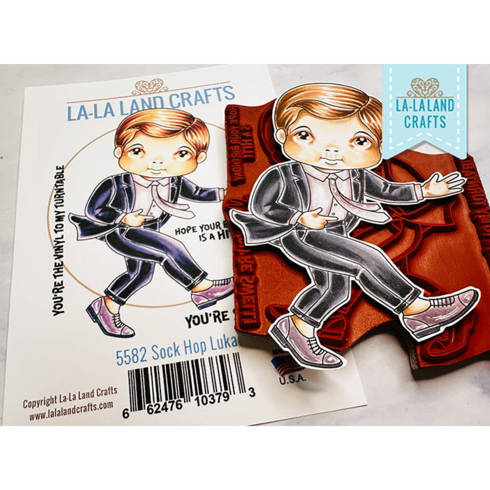Introducing the Sock Hop Luka Cling Stamp by La-La Land Crafts! Crafted in the USA from deeply etched red rubber and mounted on a cling cushion, this stamp is primed for use with an acrylic block or stamping platform.