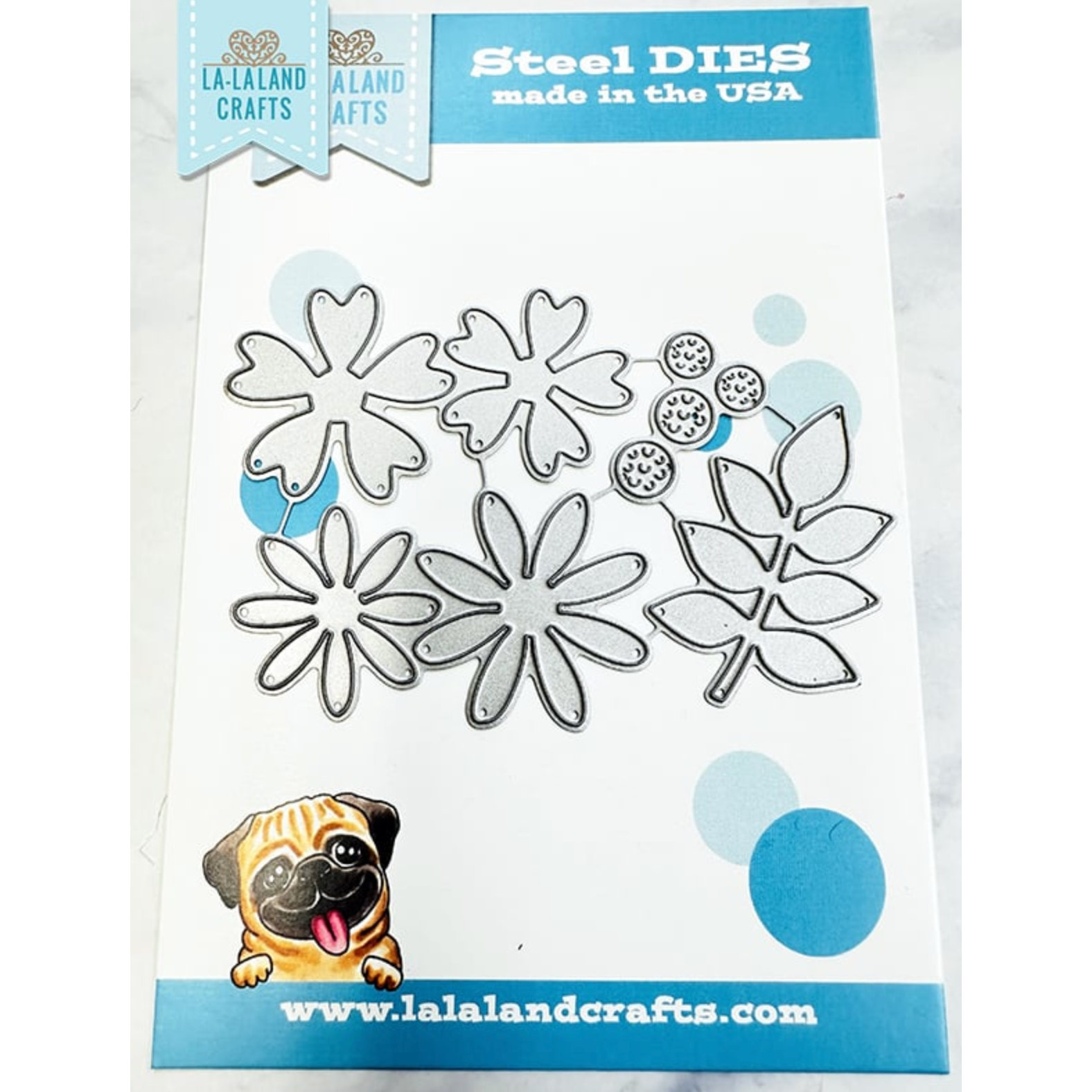 La-La Land Crafts Spring Flowers Dies set includes 9 amazing dies to create your own floral bouquet. This set features 4 different-sized flowers, 4 floral centers for added detail, and a branch with leaves to complete your image.