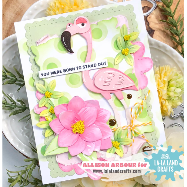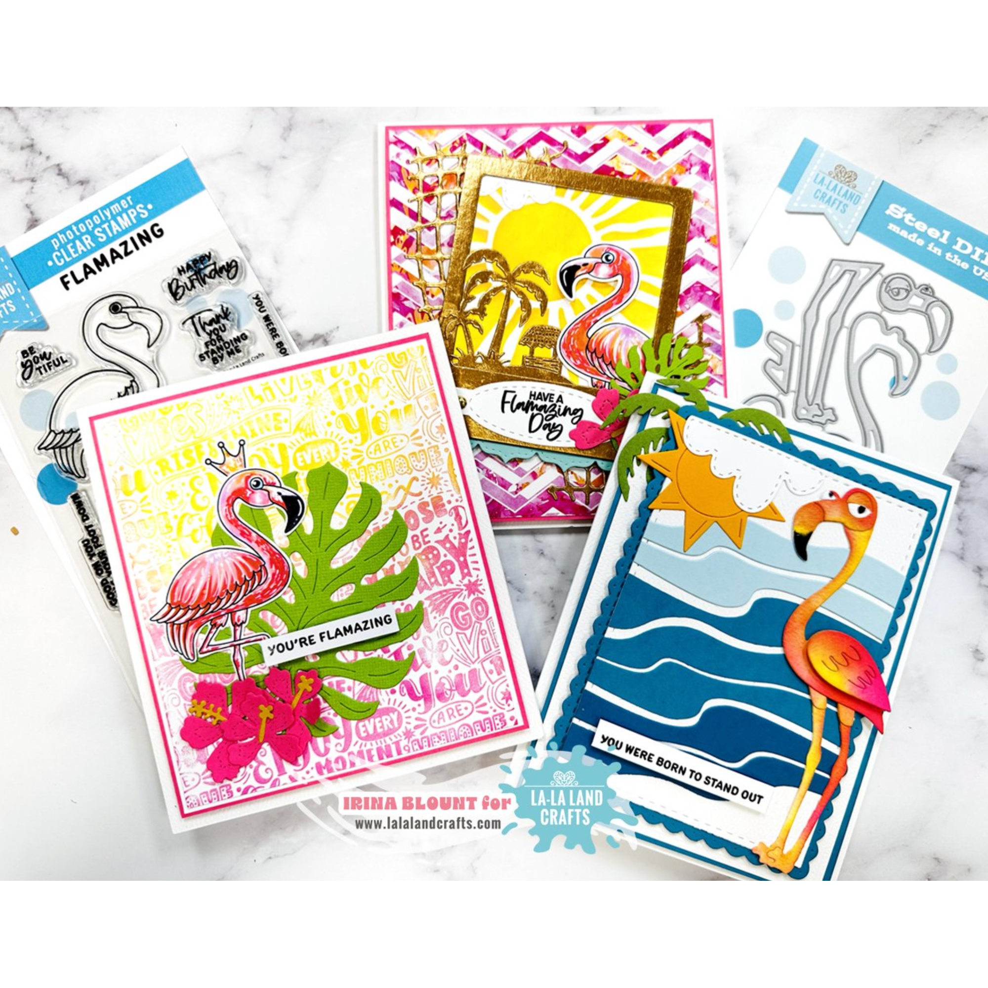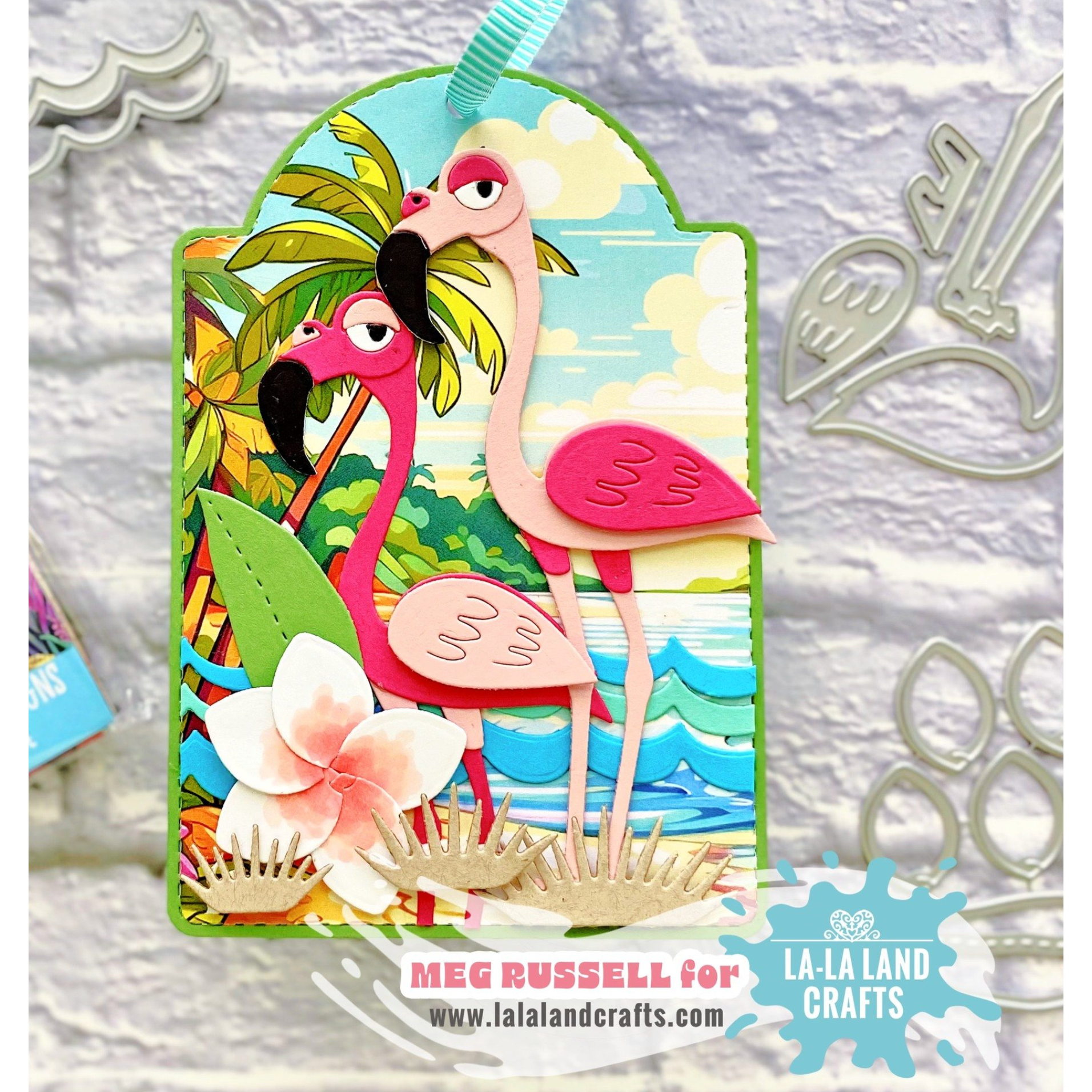 Build your own flamingo with this fun die set from La-La Land Crafts. This set includes all the separate parts needed to layer and assemble your very own bird! You'll find a pair of standing legs, wings, feathers, a face, and a body, giving you everything you need to create a charming, custom flamingo. Perfect for adding a touch of summer fun to your cards, scrapbooks, and other creative projects!