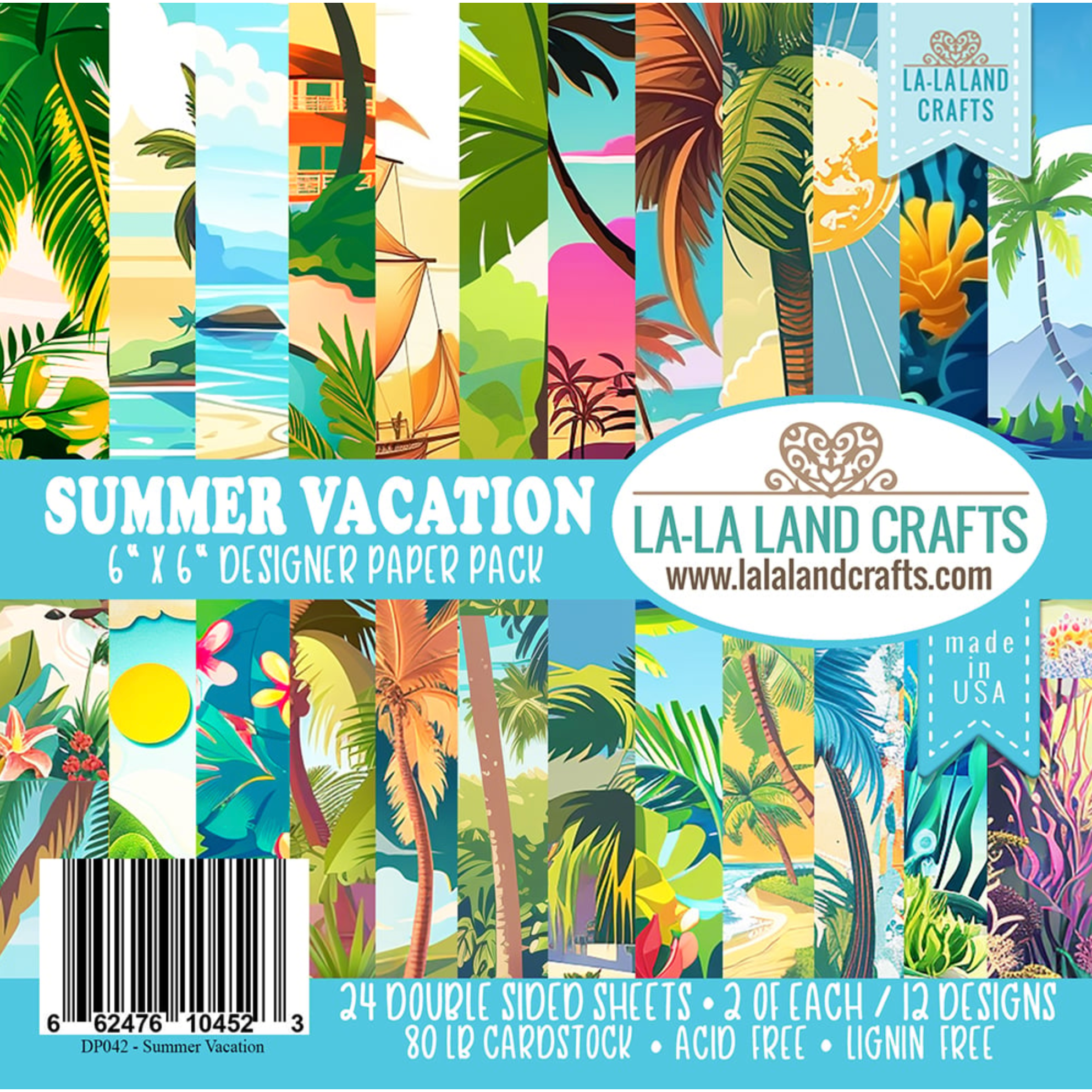 This 6x6 inch paper pack from La-La Land Crafts is perfect for creating tropical vacation backgrounds. Featuring scenes from the beach, jungle plants, vibrant colors, water, palm trees, islands, and more, this pack has everything you need to bring your projects to life.