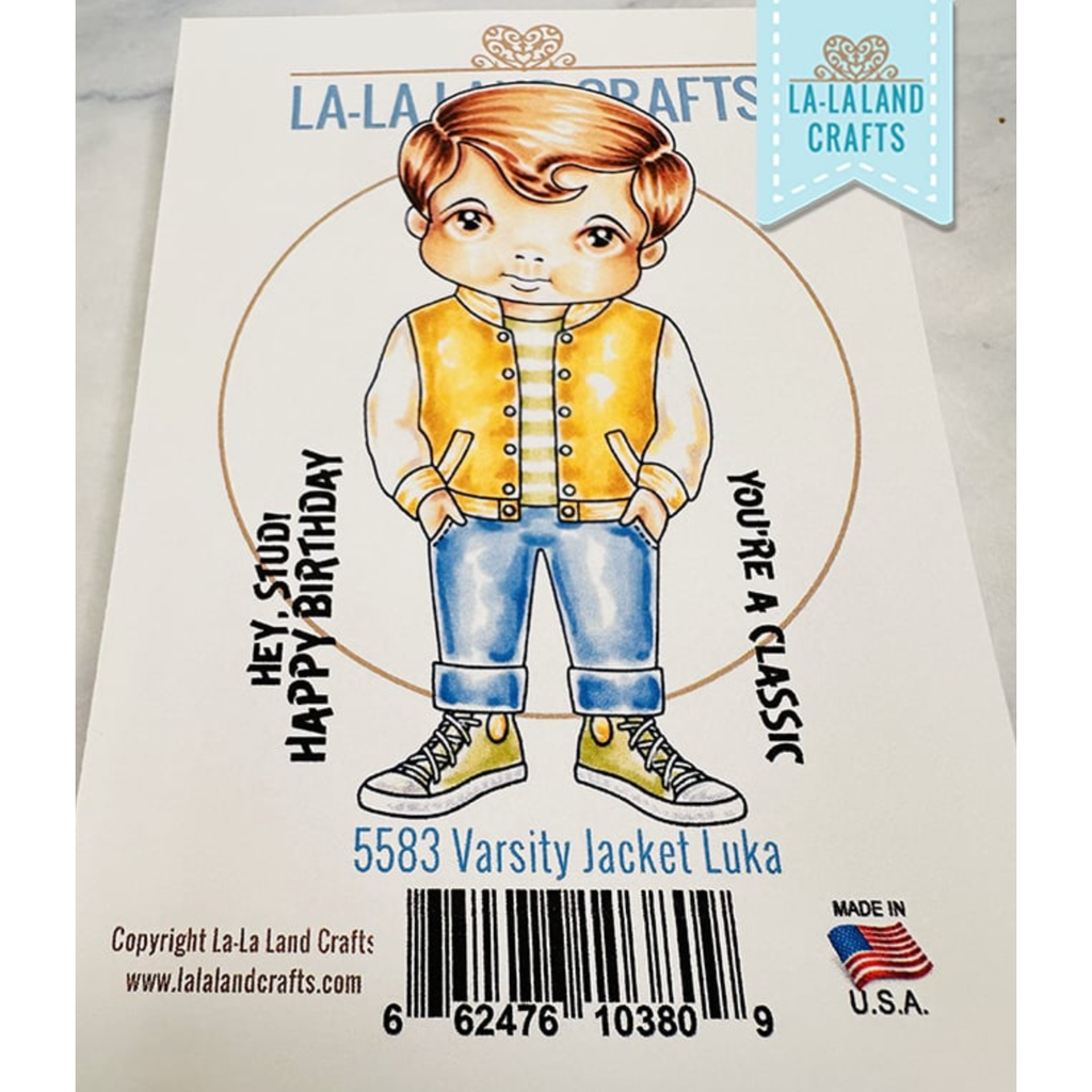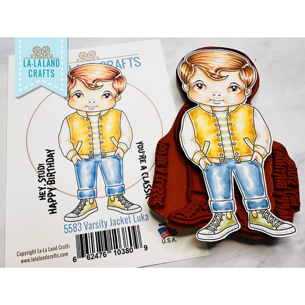 Introducing the Varsity Jacket Luka Cling Stamp by La-La Land Crafts! Made in the USA from deeply etched red rubber and mounted on a cling cushion, this stamp is ready to adorn your projects with style.