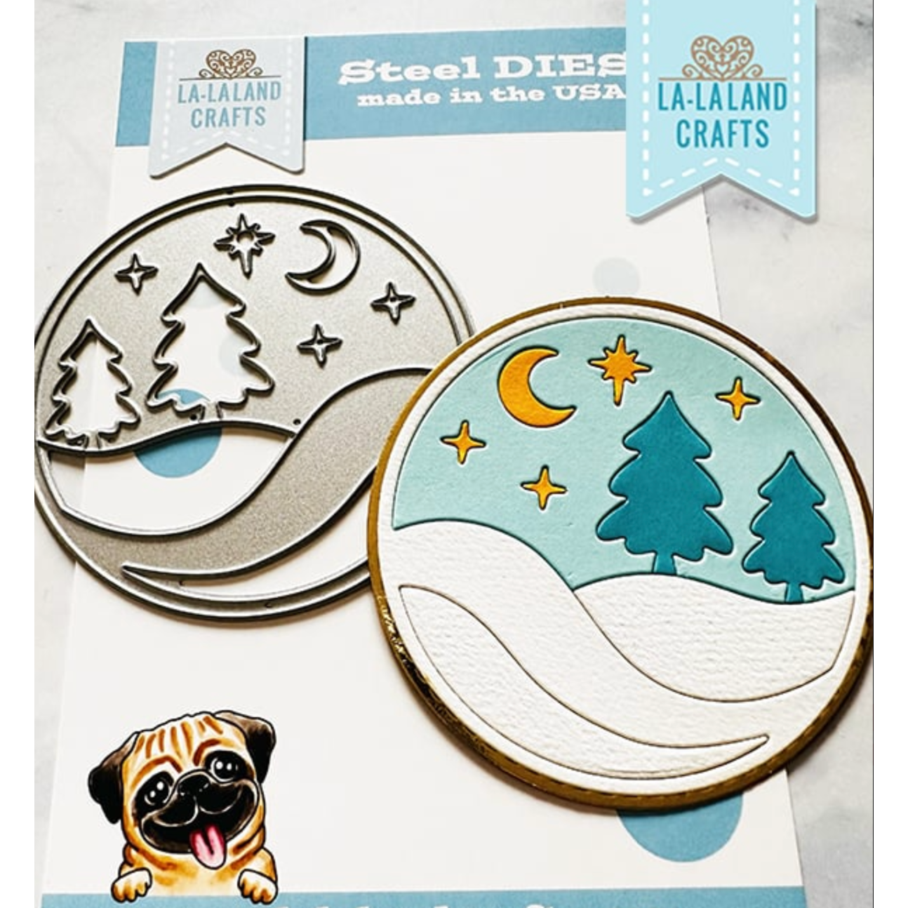 Introducing the La-La Land Crafts Winter Circle Die an exclusive steel die crafted in the USA. This circular masterpiece measures approximately 3 x 3 inches.