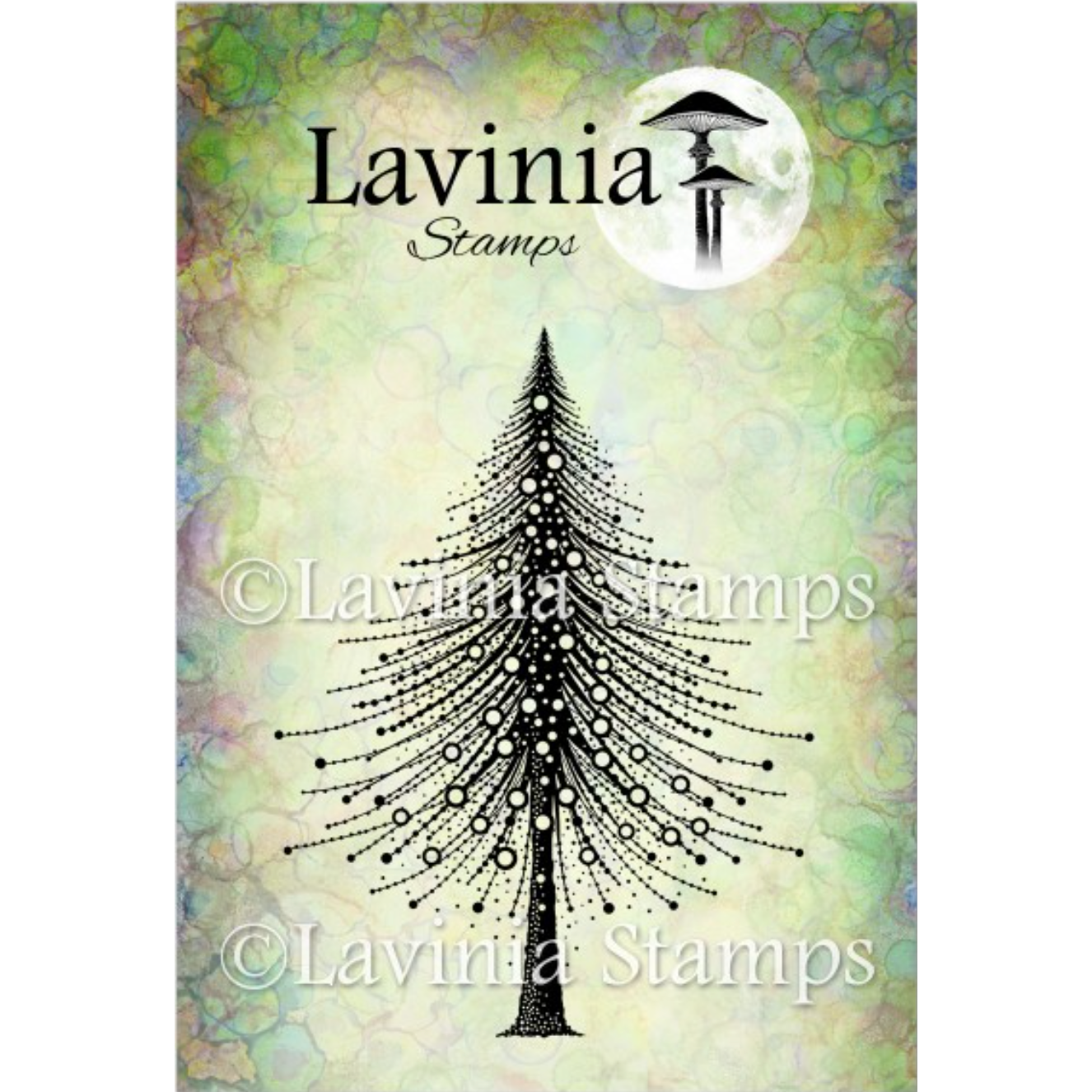 Experience the Lavinia Stamps Christmas Joy Clear Stamps – behold a captivating silhouette of a pine tree.