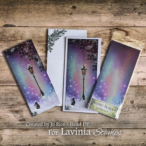 Lavinia Stamps Scenescape Spectrum Paper is a set of digitally printed 220gsm cards featuring a stunning magical background scene in a spectrum of rainbow colors, with falling snow reminiscent of the Northern Lights. These magical Scene Scapes make perfect premade backdrops for your creative projects, saving time while adding impact. Each pack includes four high-quality papers, each measuring 8 x 3.5 inches.
