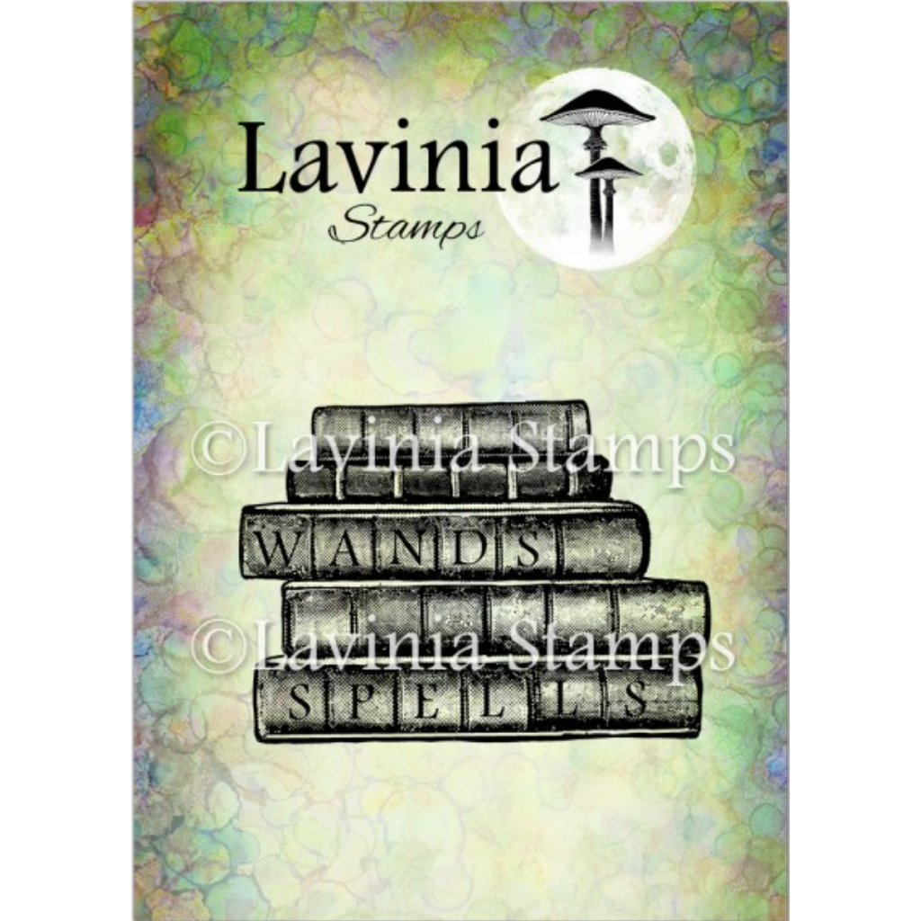 Introducing the Lavinia Stamps Wands and Spells Clear Stamp, a single stamp featuring an illustration of a stack of books piled on top of each other. This stamp presents a stack of five books, revealing their spines left bare, allowing for personalized touches. It pairs beautifully with the Wizardry Stamp and the Burst of Stars to add a touch of magic to your creations.