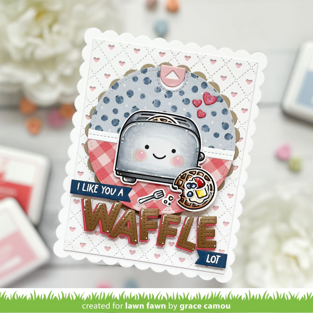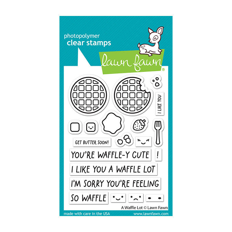 Add a touch of sweetness to your next Valentine's Day or special occasion card with the Lawn Fawn A Waffle Lot Clear Stamps. This 3x4 inch set comes with 2 waffles, a strawberry, blueberries, pads of butter, a fork, and smiley faces - perfect for making interactive cards with Let's Toast Pull Tab Add-On set from Lawn Fawn. Words and sentiments included: