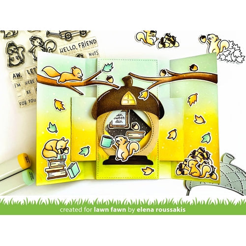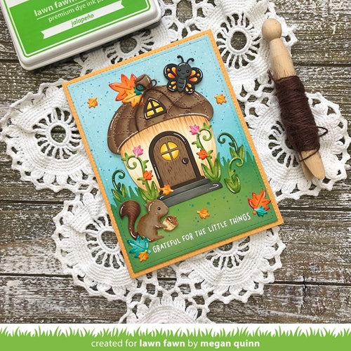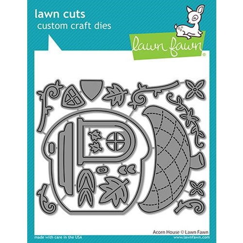 Create a cute acorn house perfect for woodland critters and magical creatures! Decorate it with vines, flowers, and leaves to create your perfect woodland home. Approximate sizes are in inches: assembled acorn house with cap: 3 x 3.25, large leaf: 0.875 x 1, small leaf: 0.575 x 0.75, door: 1.25 x 1.5, steps: 2 x 0.375, window: 0.625 x 0.5, tall vine: 0.625 x 1.5, and short vine: 0.625 x 0.75.