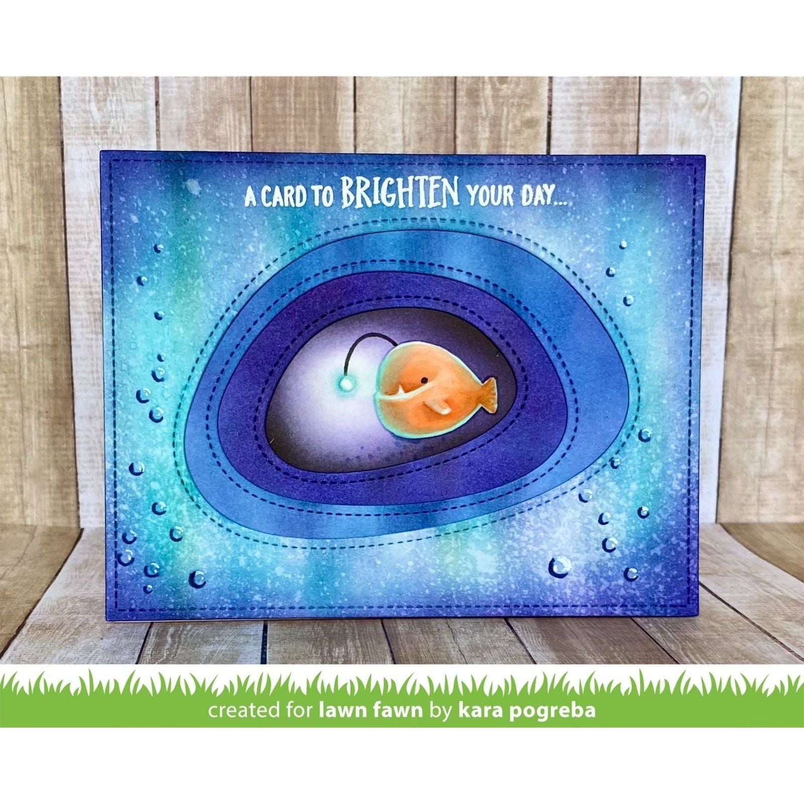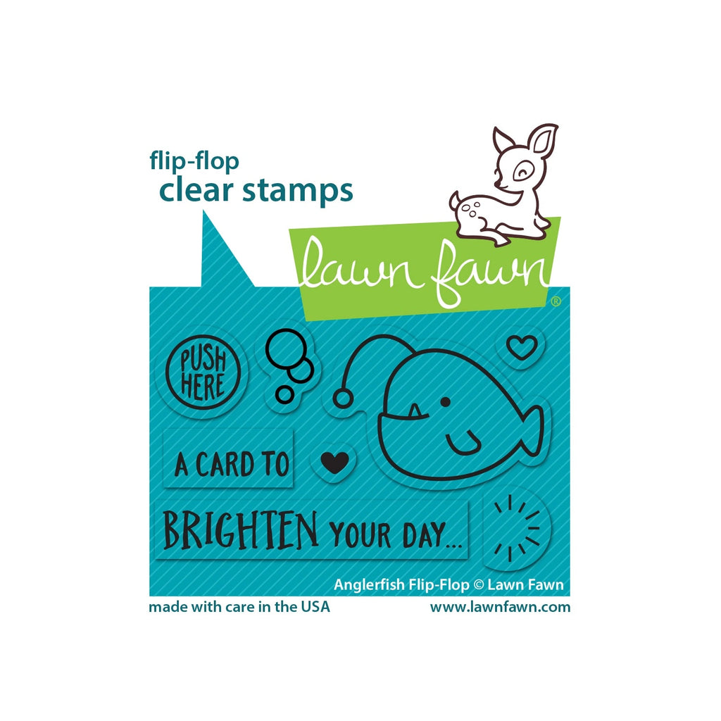 Dream of flipping that stamp but can't get out of the flop? Get your fins wet with Lawn Fawn's Anglerfish Flip Flop Clear Stamps - now you can make a splash when you're crafting! This adorable "sublime" Anglerfish will be flipping in no time! This sweet fish was "flipped" from the Lawn Fawn You are Sublime Clear Stamp set. This 2x3 inch clear stamp set includes 8 unique stamps including a heart, heart outline, bubbles, light lines and the words/sentiments: "Push Here" and "A card to BRIGHTEN your day..."