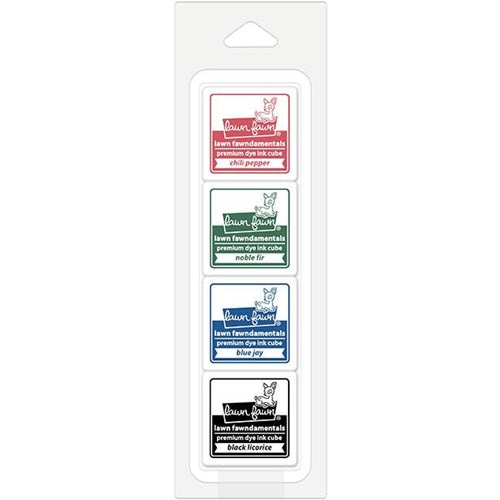 Contains one color of each of the following ink cubes: Chili Pepper, Noble Fir, Blue Jay, and Black Licorice.