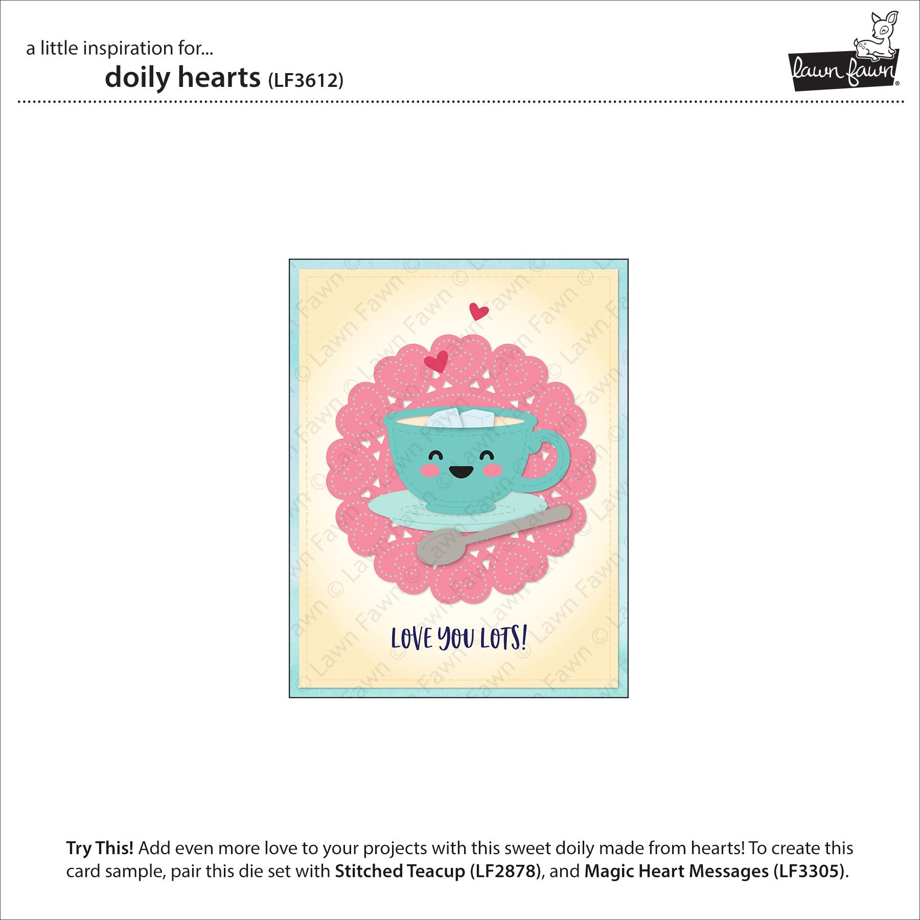 Enhance your Valentine's Day crafts with Lawn Fawn's Doily Hearts Die. This delicate doily features charming dotted heart patterns and intricate lace cutouts. Use it as a backdrop for critters and sentiments, or add a "Happy Galentine's Day" sentiment banner with coordinating sets like Henry's Build-A-Sentiment: Love from Lawn Fawn! Approximate size of doily: 3.375 x 3.375 inches.