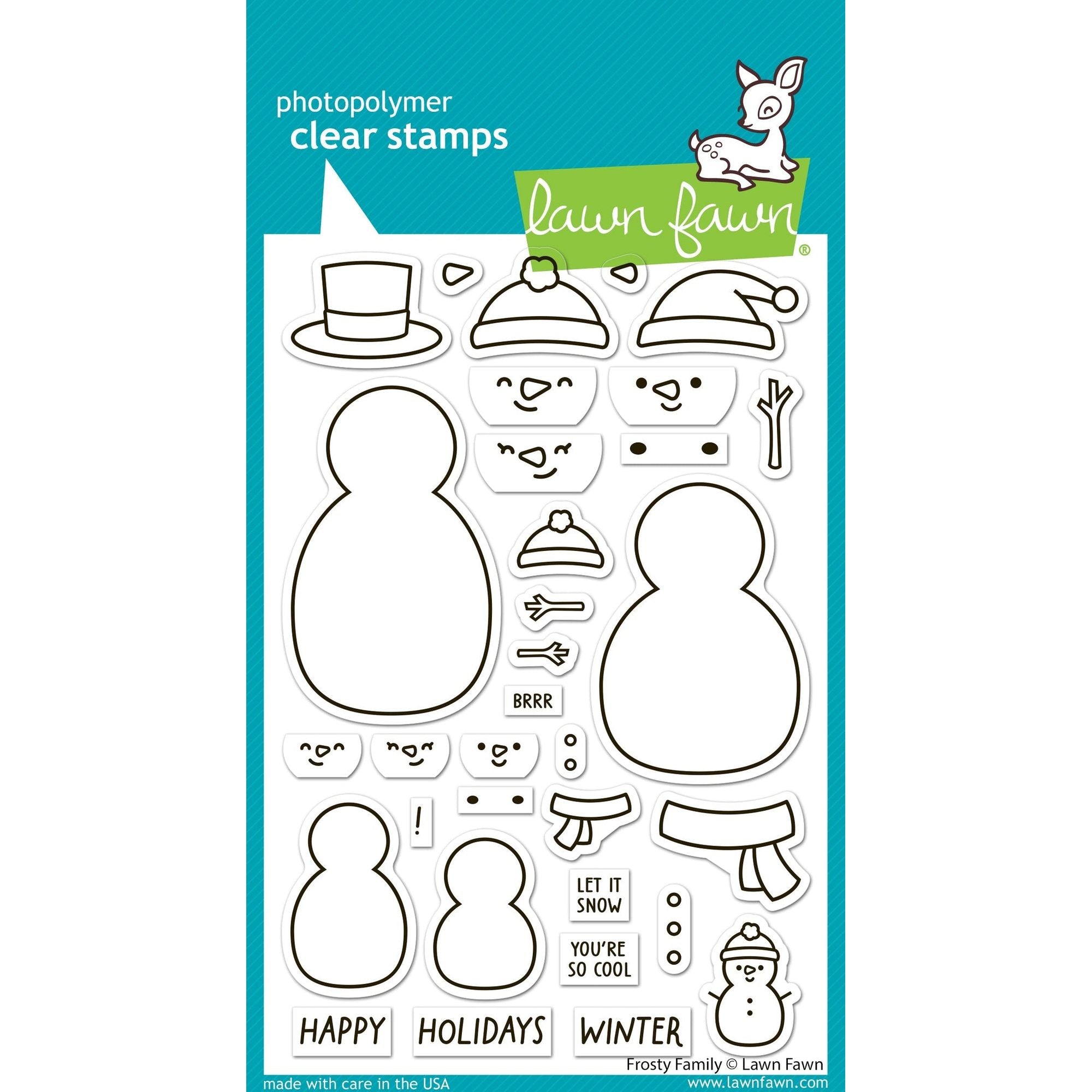 Capture frosty family moments with the Lawn Fawn Frosty Family Clear Stamps. Customize your snowmen with charming accessories like scarves, hats, and buttons. Use the tiny sentiments for speech bubbles and add even more family members with the Frosty Family Add-On. Get creative with coordinating sets like Henry's Build a Sentiment Winter and Snowball Fight. 4x6 inch set. Words and sentiments included: