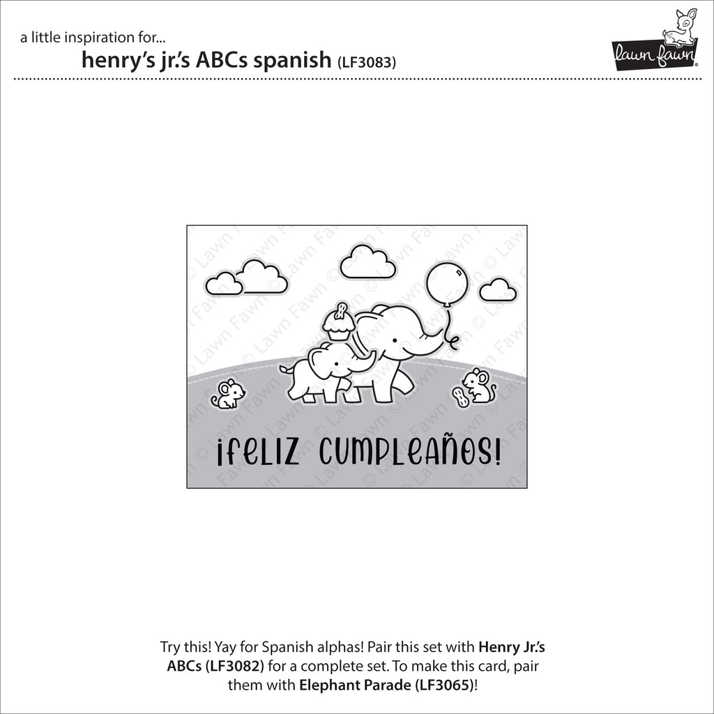 ¡Hola! This add-on to Henry Jr.’s ABCs includes special characters and punctuation to create your sweet sentiments in Spanish. The Spanish language is written using the Latin alphabet, along with a few special characters: the vowels with an acute accent (á, é, í, ó, ú), the vowel u with diaeresis (ü), and ñ. The stamp set is approximately 2x3 inches in size.