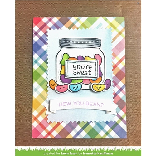 Add a burst of sweetness to your cards with the Lawn Fawn How You Bean? Clear Stamps! Perfect for Easter, thank you notes, or just because, this 4x6 inch clear set lets you stamp a jar full of cheerful jelly beans ready to brighten any day. Color them in vibrant hues and add cute little faces for extra joy — your handmade cards will be impossible to resist! Words and sentiments included: