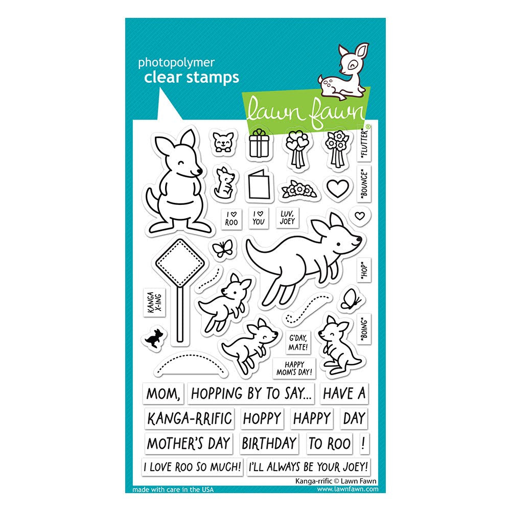 Get ready to hop into some serious crafting fun with the Lawn Fawn Kanga-rrific Clear Stamps! This adorable set includes a mama kangaroo and her joey, perfect for creating Mother's Day cards, birthday greetings, and just saying hello. Plus, the sentiment add-on (sold separately)makes it perfect for welcoming a new baby. Make your cards and crafts more 'roo'-tastic with this 4x6 inch clear stamp set. Words and sentiments included: