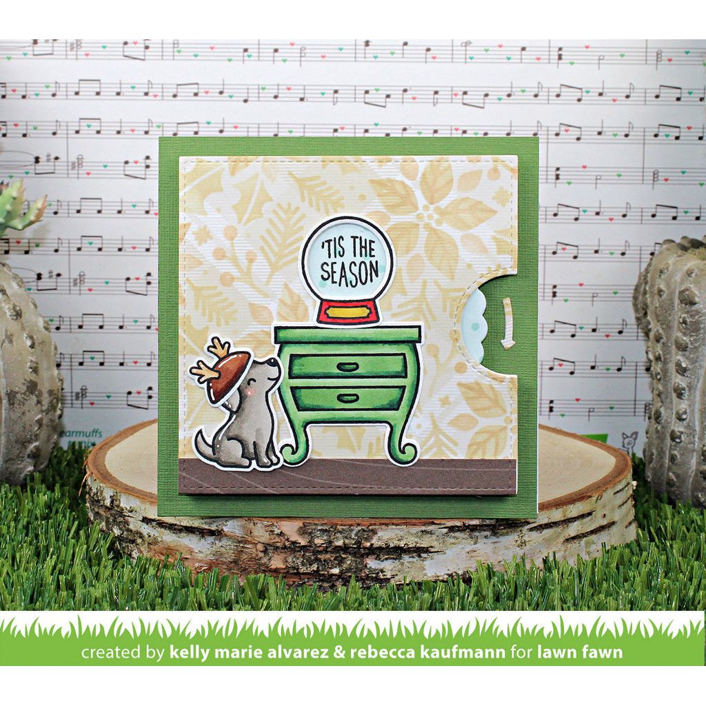 Bring winter cheer to your holiday greetings with this set of six clear stamps from Lawn Fawn. Perfectly designed to fit the Little Snow Globe: Dog and Little Snow Globe: Bear, these 2x3 inch stamps bring festive sentiment to your craft projects. Complete the scene with matching Reveal Wheel and Add-On sets.