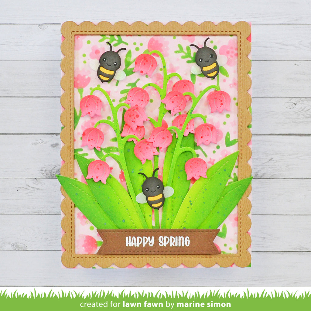 Surprise your mom on Mother's Day with the Lawn Fawn Lovely Lily of the Valley Dies! These versatile dies allow you to create a beautiful bouquet of flowers in various colors and patterns, perfect for spring occasions. Cut out flower tops, stems, and leaves with ease for a personalized touch. Assembled lily of the valley measures 1.625 x 4.5 inches. Leaves measures 0.625 x 3.5 inches. This is a 4-piece die set.