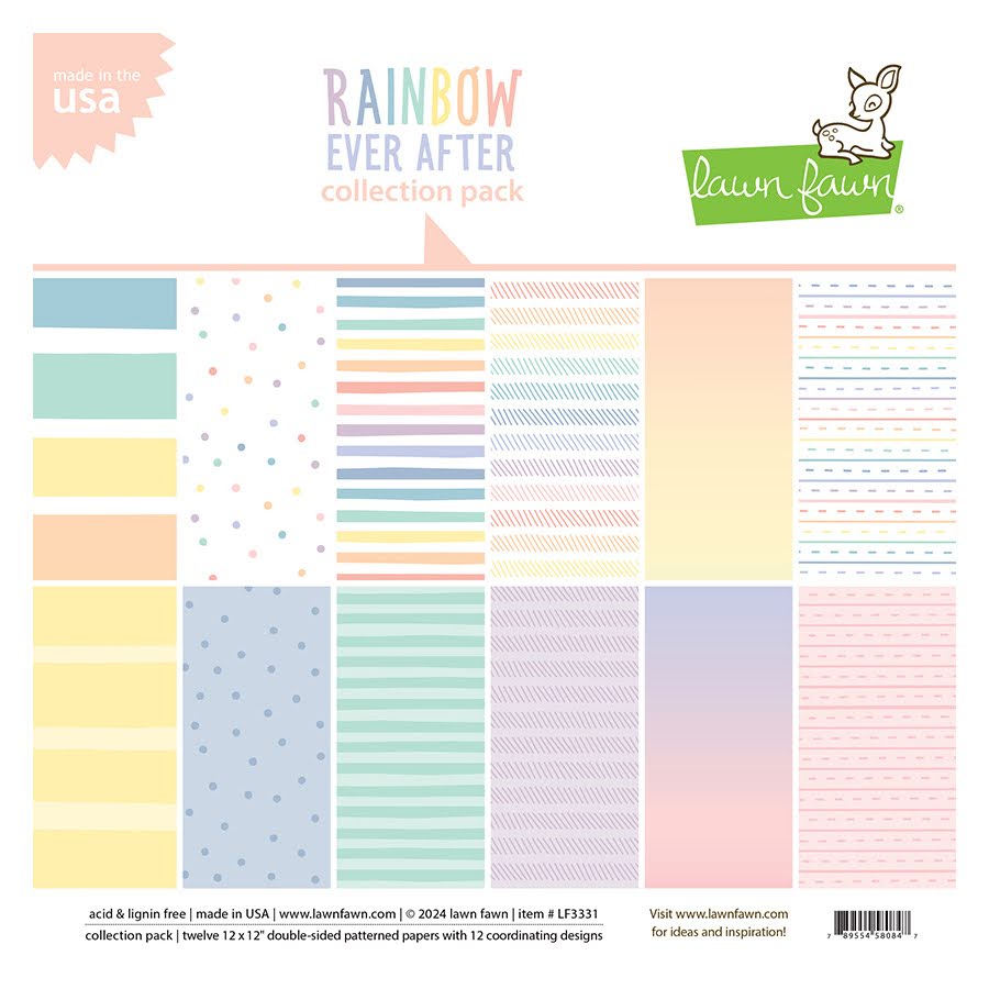 Enhance your card-making and crafting projects with Lawn Fawn's Rainbow Ever After Collection Pack. Featuring 12 double-sided 12x12 inch coordinating patterns in a charming pastel rainbow palette, this pack offers endless creative possibilities. Perfect for making beautiful cards and scrapbook layouts, this collection is a must-have for any crafting enthusiast.