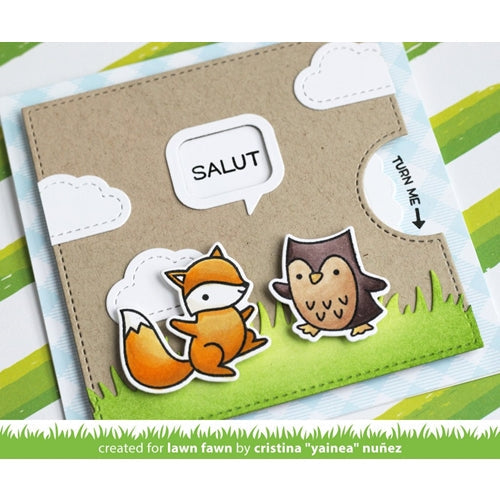 This set coordinates with Lawn Fawn's Reveal Wheel to create an interactive card that reveals different sentiments as you turn a wheel. Check out Reveal Wheel sentiments for messages that are sized perfectly for this window!