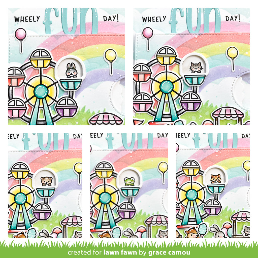 Turn your Wheely Great Day scene into an interactive project that is sure to impress! This set coordinates with Reveal Wheel (sold separately) and Wheely Great Day (sold separately) from Lawn Fawn. To make it even easier to place your stamps correctly, pair this with the optional Reveal Wheel Wheely Great Day Templates (sold separately).