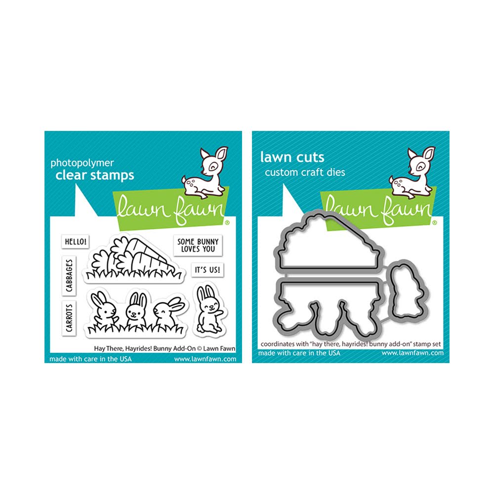 Enhance your Easter and spring projects with Lawn Fawn's Hay There, Hayrides! Bunny Add-On Clear Stamps and Dies. This cute, 2x3 inch stamp set features friendly bunnies ready for a farm adventure. This set also includes a set of 3 dies to perfectly cut out the icons included in the stamp set! Perfect for adding a fun touch to your crafts! Words and sentiments included: