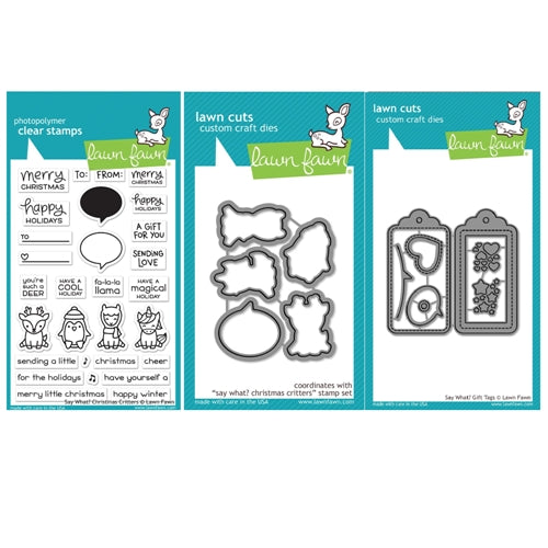 Lawn Fawn Set Say What Christmas Critters Clear Stamps and Dies