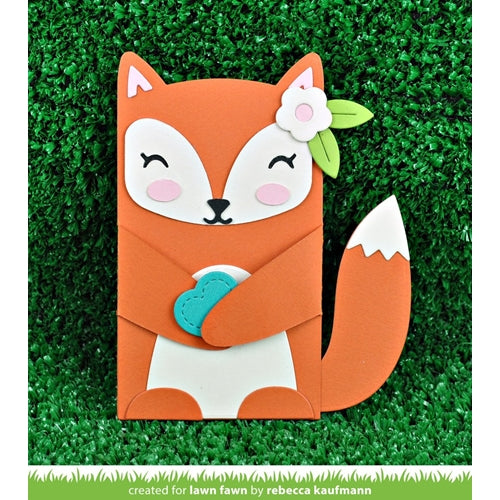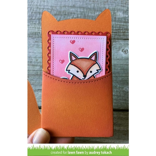 This little pocket is the perfect size for a gift card or other small note. Pair it with Woodland Critter Huggers from Lawn Fawn to create a cute gift for a friend or loved one! Approximate finished size is 2.25 x 2.125 inches.