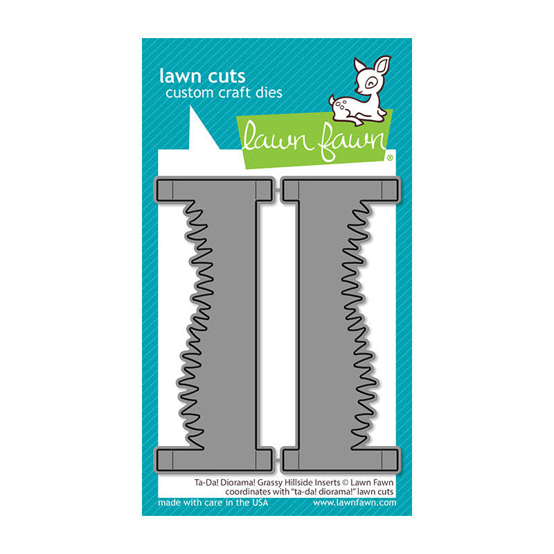 These Lawn Fawn Ta-Da! Diorama! Grassy Hillside Inserts Dies add dimension and creative options to your interactive craft projects. Perfectly measured to fit, they allow you to mix and match with Hillside Inserts for added scene versatility. Please refer to the Ta-Da! Diorama! Die Set for approximate dimensions.