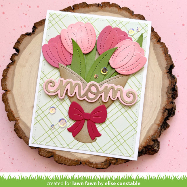 Create a stunning tulip bouquet with Lawn Fawn's Terrific Tulips Dies. This versatile set offers the ability to create various tulip varieties by layering petals. Mix and match with other flower sets for endless possibilities. With 8 pieces and high-quality steel construction, these dies are a must-have for any crafter. Approximate sizes are in inches: