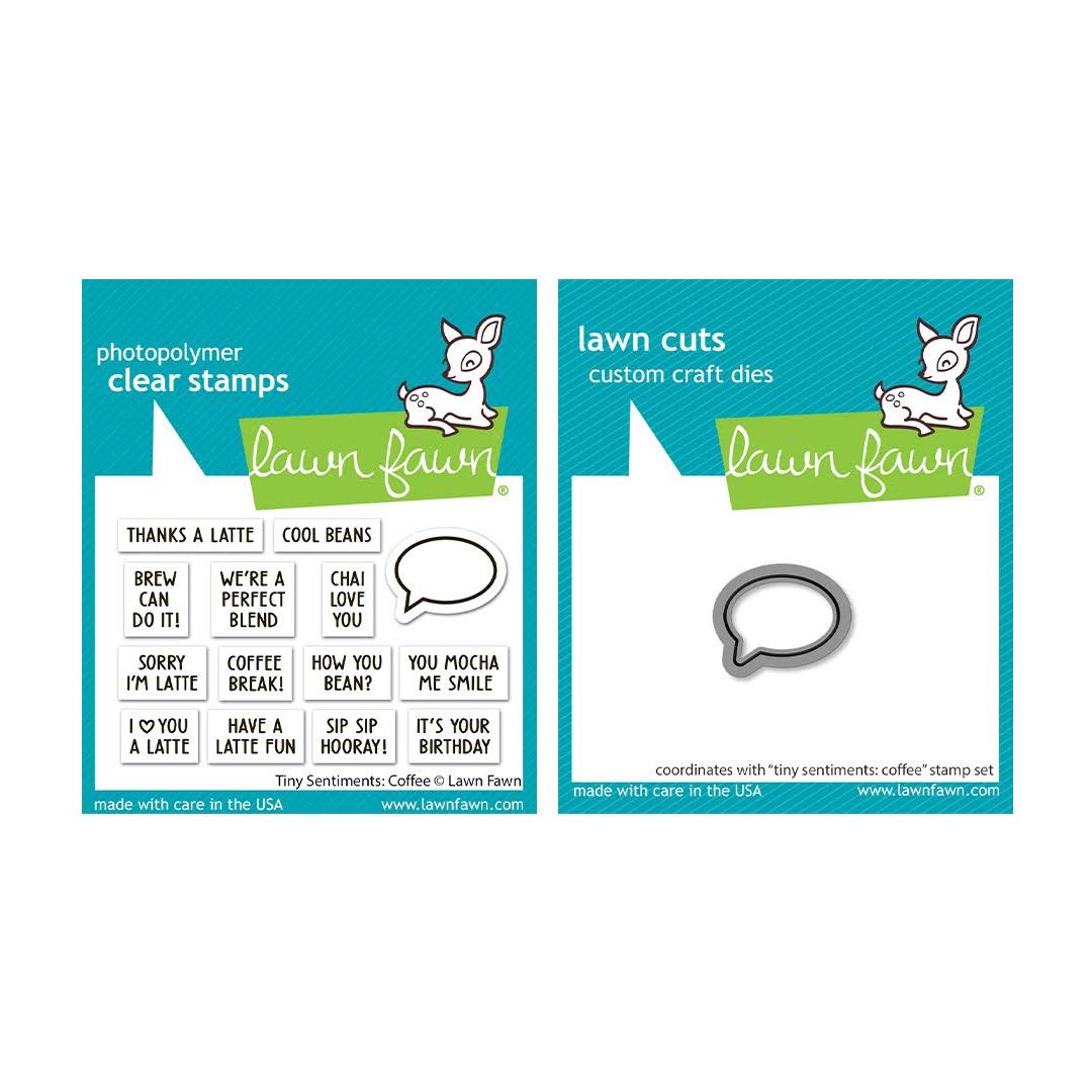 Spice up your coffee-themed cards with Lawn Fawn Tiny Sentiments: Coffee Stamps and Die Set! This mini set includes fun phrases and a speech bubble, perfect for turning any critter into a coffee lover. Coordinate with Treat Cart and All the Speech Bubbles for even more options. (Caffeine not included.) 2x3 inch set. As a special bonus, this bundle includes the coordinating die set for perfect results every time! Sentiments included: