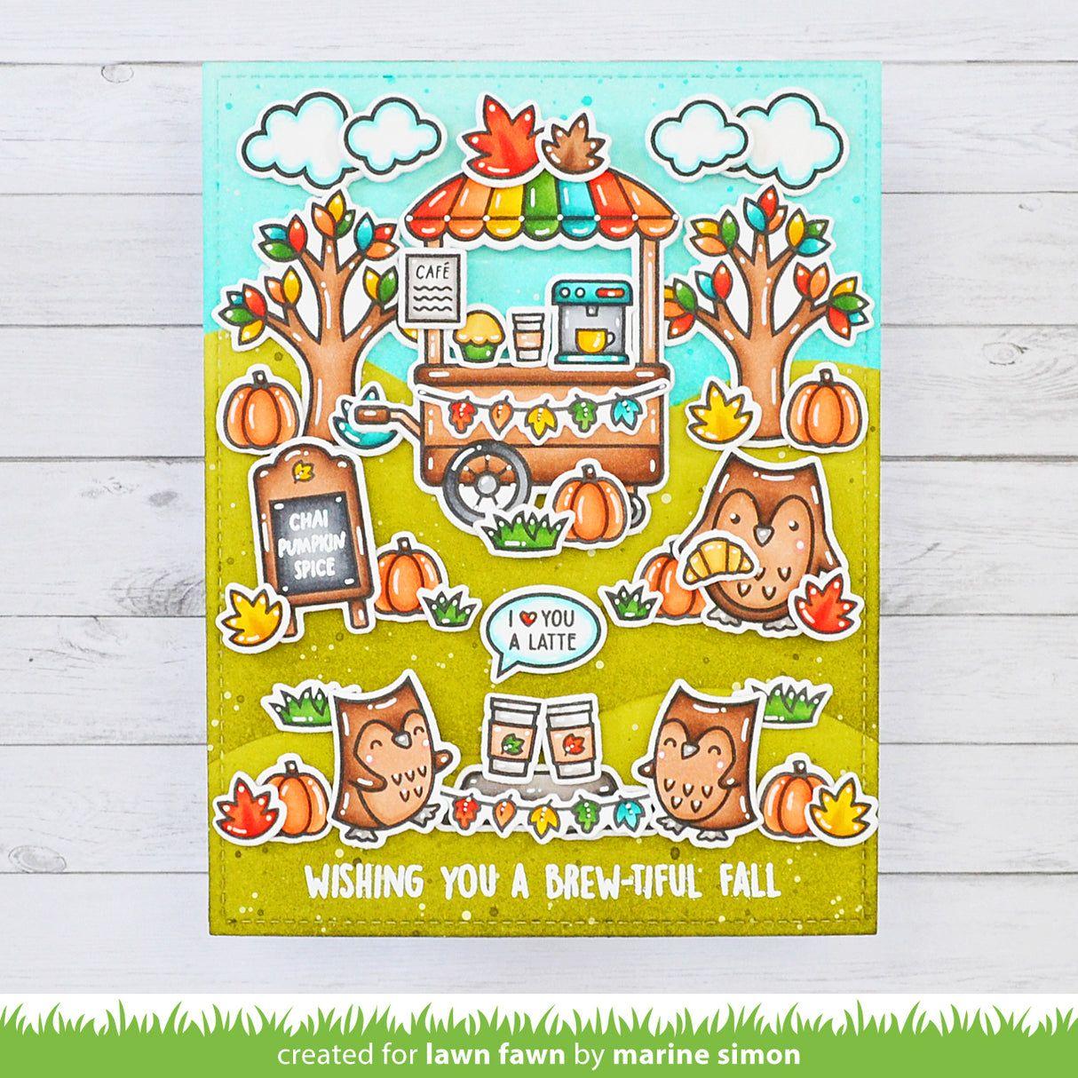Add a brew-tiful touch to your Treat Cart with this Coffee Stamps Dies Coloring Stencils Set by Lawn Fawn! Decorate with seasonal banners and an espresso maker while serving up punny sentiments and making a new owl friend. For endless themed carts, pair with Tiny Sentiments: Coffee and All the Speech Bubbles. Latte fun! 4x6 inch set. As a special bonus this bundle includes the coordinating dies AND coloring stencils for perfect results every time! Words and sentiments included: