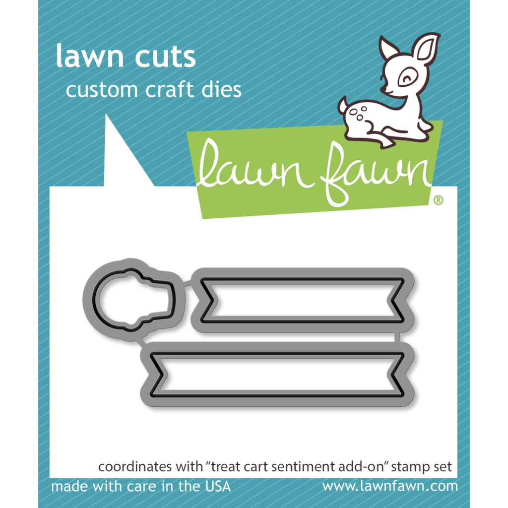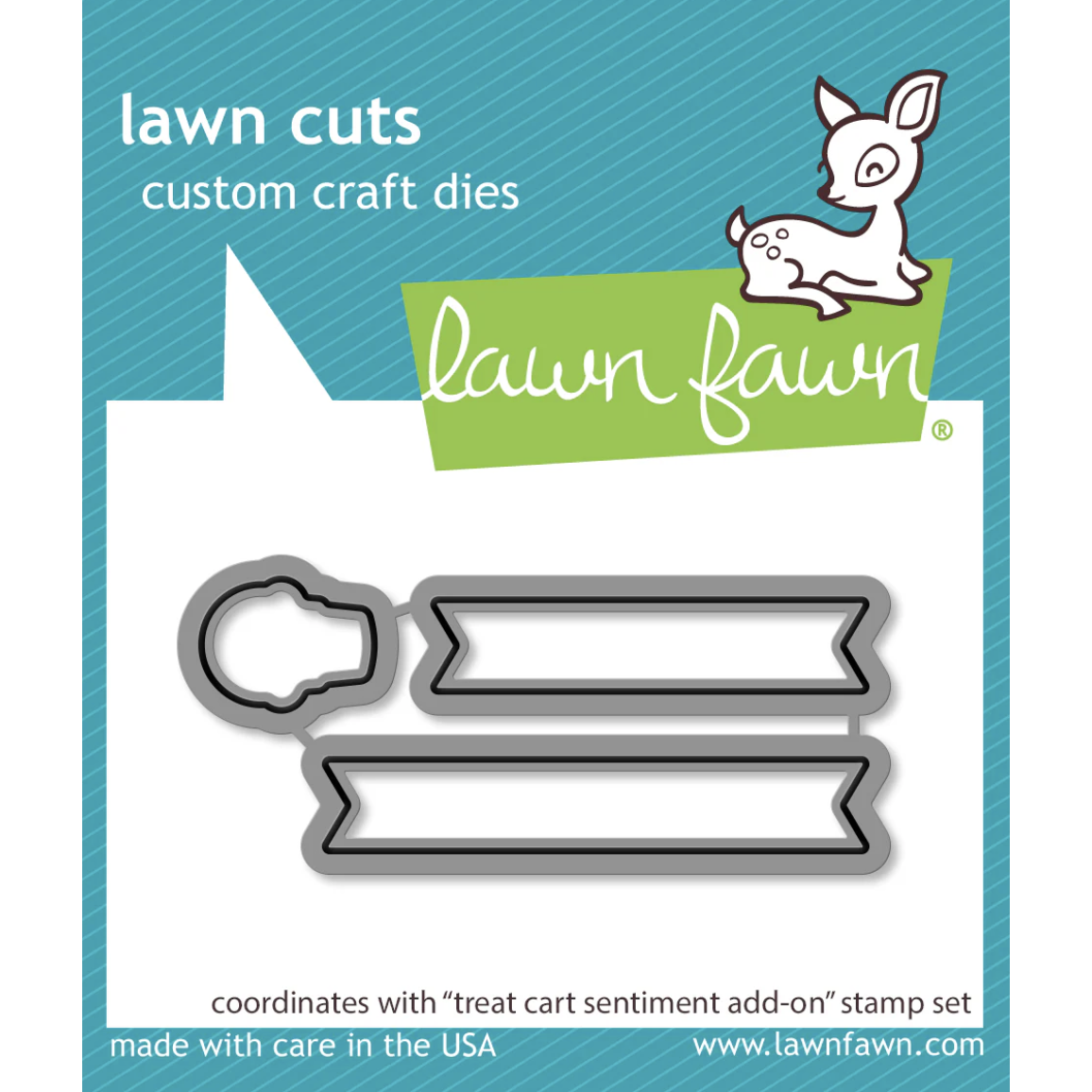 Create cute, custom banners and ice cream cone accents with this 3-piece coordinating die set for the Lawn Fawn Treat Cart Sentiment Add-On! Perfect for adding a personal touch to treats and gifts. (Wait, did someone say treats? Count us in!)