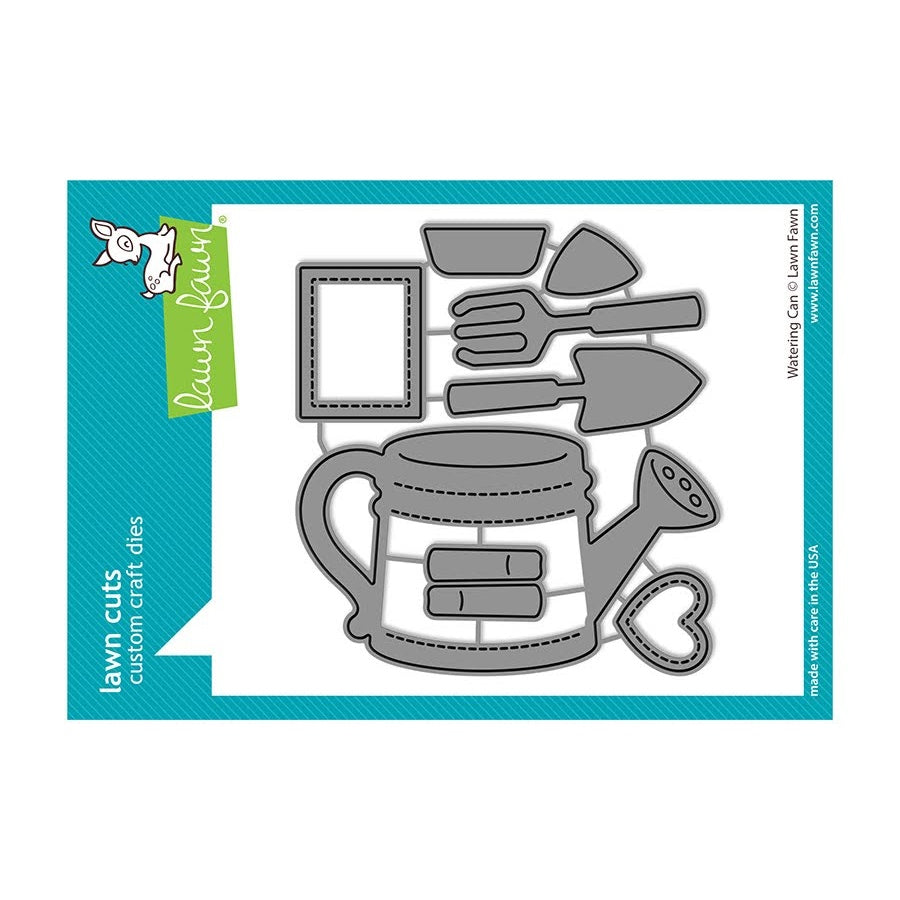 Brighten someone's day with the Lawn Fawn Watering Can Dies! This set includes a seed packet and tools that fit inside the watering can. Use your favorite paper for endless possibilities. Perfect for sending spring greetings and spreading joy! 8-piece die set. Approximate dimensions are in inches:
