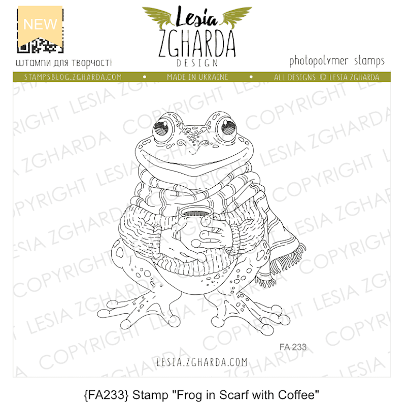 Lesia Zgharda Frog in Scarf Clear Stamp fa233