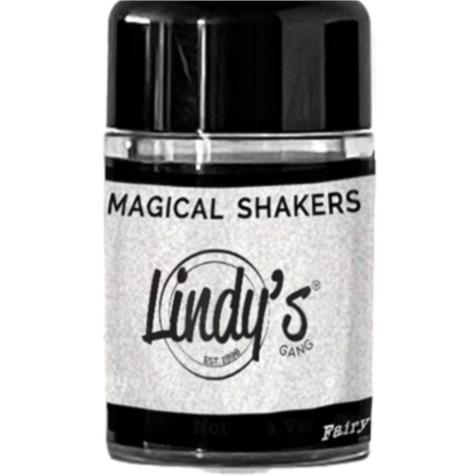 Introducing Lindy's Stamp Gang Fairy Fluff Shimmer Shaker! This 10g jar with a convenient shaker insert is your ticket to shimmery goodness. Fairy Fluff was created to infuse your projects with that captivating shimmer you've been dreaming of. Crafted for versatility, this non-toxic, acid-free mica powder can be used on everything from paper to wood. Simply sprinkle it directly onto porous surfaces and spritz with water for a mesmerizing speckled shimmer effect, or paint it all over to cover your creations in shimmering beauty. Whether you choose to sprinkle or paint, Fairy Fluff allows you to add that touch of enchantment to all your artistic endeavors. Plus, it's made in the USA and also available in spray form. Get ready to elevate your crafts with Fairy Fluff's magical shimmer!