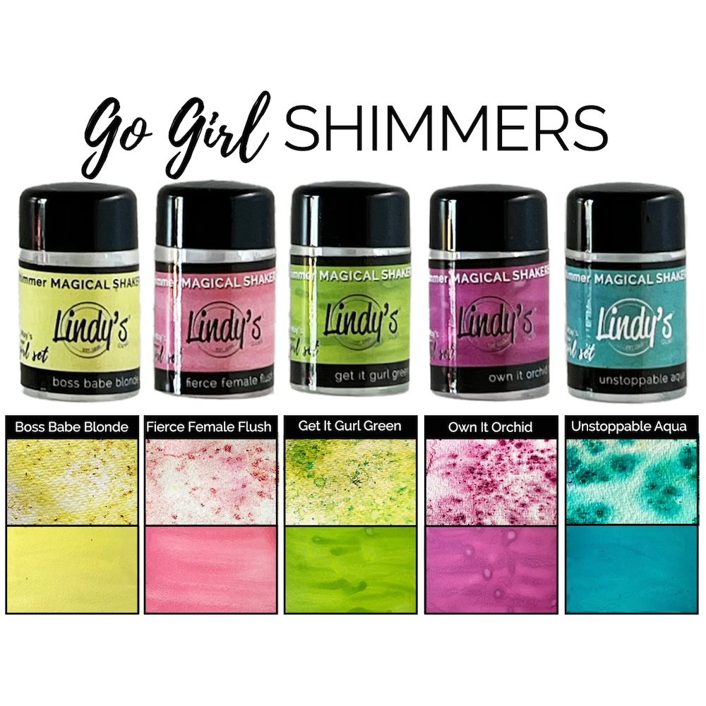 The Lindy's Stamp Gang Go Girl Shimmer Shaker Set, crafted by the vibrant Natalie May, brings bold Aussie flair to your crafting projects. This 5-pack of non-toxic, acid-free dye-based powders is perfect for creating vibrant colors on paper, wood, and beyond. Simply sprinkle the powder on any porous surface and spritz with water for a striking stain, or mix it into resin, polymer clay, or other mediums for custom hues. Adjust the intensity by adding a little for soft tints or more for rich, bold color. Each 10g shaker jar includes: