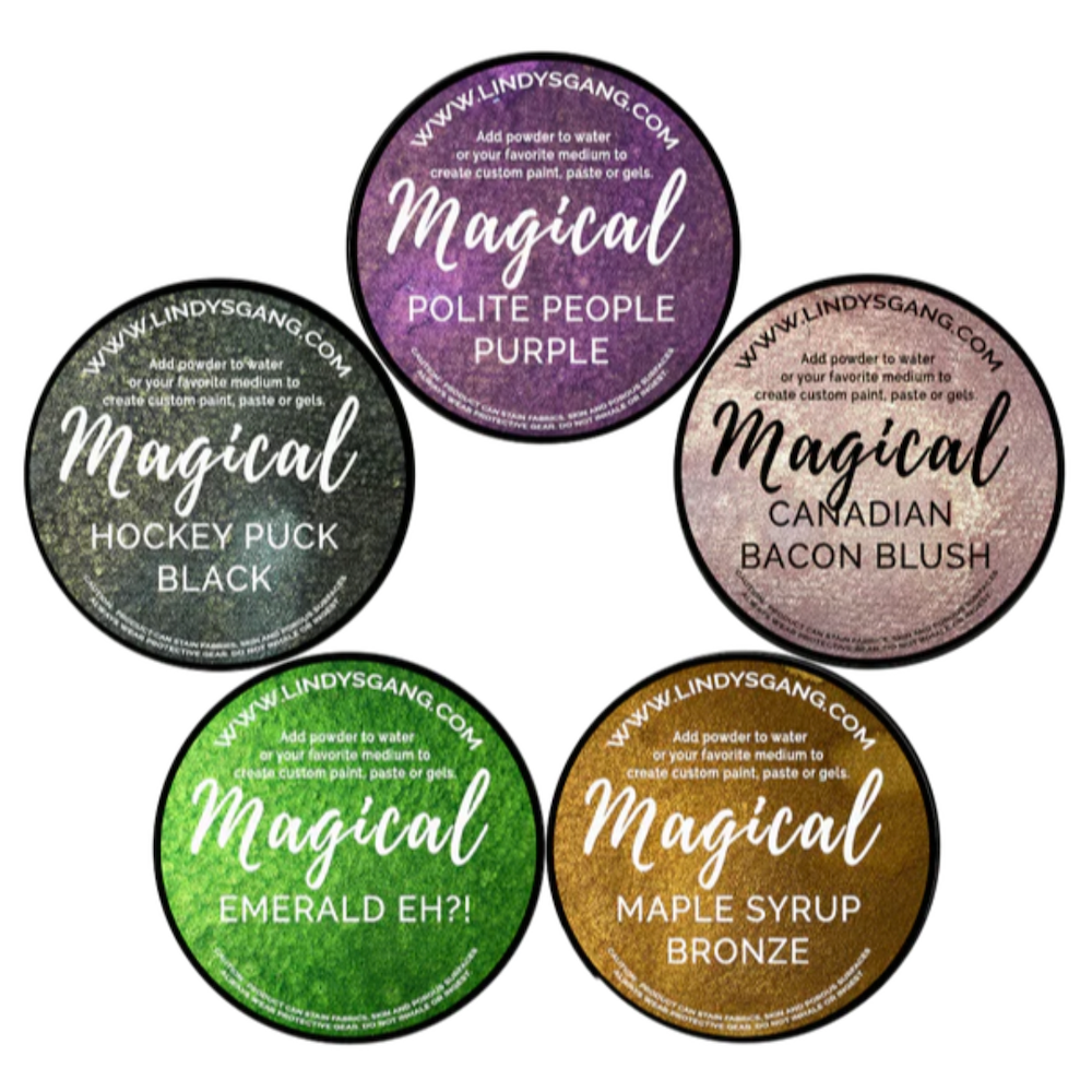 Contains pearlized mica powders, powdered dye based pigments & a fixative