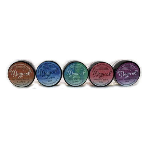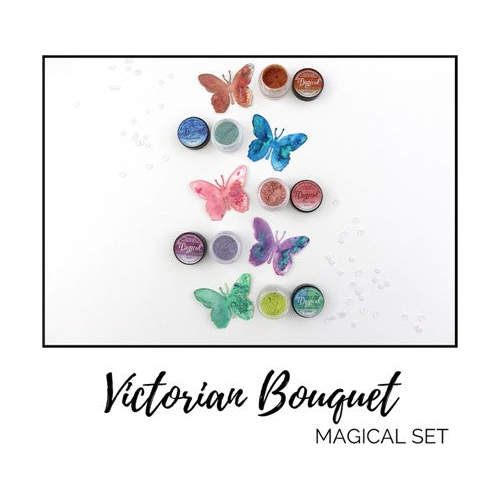 Make your projects sparkle with our super popular Victorian Bouquet Shimmer Magicals Pigment Powder Set. Designed for use on everything from paper to wood, the dye-based powders are non-toxic and acid-free. Sprinkle them directly onto a porous surface and spray it with water for a vibrant stain, or mix them into different mediums to create potent pastes.