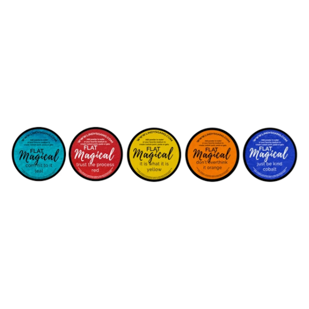 Who doesn't need a perfect set of primary colors? Natalie May is at it again with a super vibrant set that will be a staple in your studio that she named after her words of encouragement she uses in all her classes! These beauties are flats, so they are super bright, rich, and easily mixed with each other or the magicals you have at hand! Add glitzy magicals for some shimmer, or leave them as glorious flats! Either way, you won't be disappointed in these beauties!