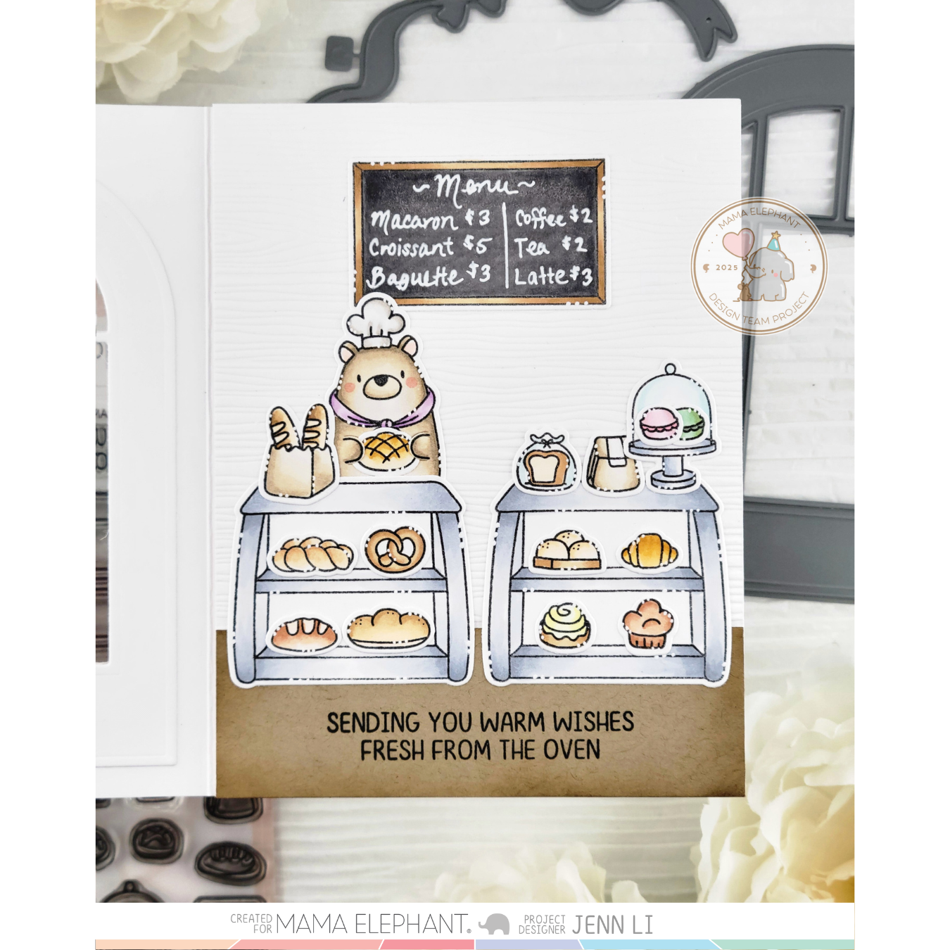 The Mama Elephant Bakery Bears Clear Stamps have tasty treats and creative possibilities! The 4x6 inch clear stamp set features two adorable baker bears dressed in hats and work attire, a sales counter, and a delightful assortment of baked goods. Mix and match the images and sentiments to design your perfect bakery scene for cards, tags, and paper projects. Coordinating Baker Bears Creative Cuts Steel Dies sold separately.