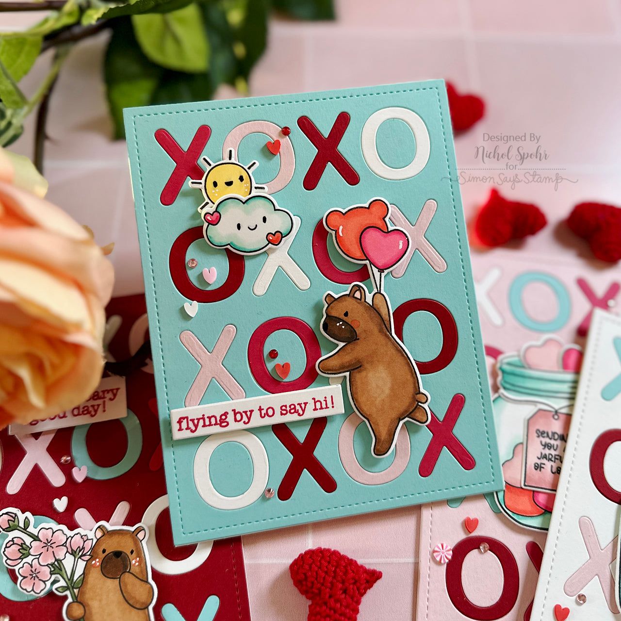This stamp set includes three adorable bears, one holding a flower, one holding balloons, and the last holding a bunch of hearts. There are also images of a happy sunshine, cloud and other accessories along with 6 sentiments.