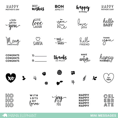 Contains 37 Stamps: 25 Sentiments and 12 images