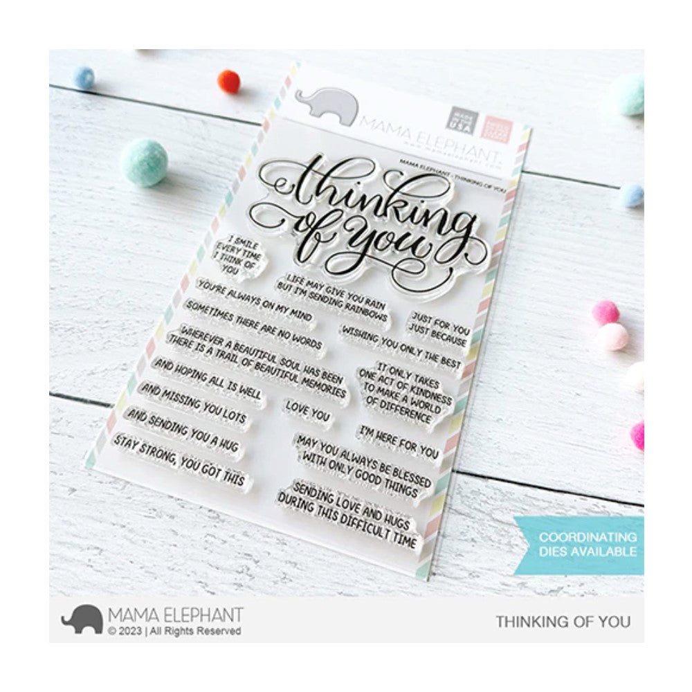 To complement this stamp set, the Thinking of You Creative Cuts coordinating die set is sold separately. This die set has been created with precision to perfectly cut out the sentiments and images from the stamp set, and includes various die shapes to enhance your paper crafting projects. Together, the stamp set and coordinating die set offer endless possibilities for creating personalized and heartfelt cards, scrapbook pages, and other paper crafting projects.