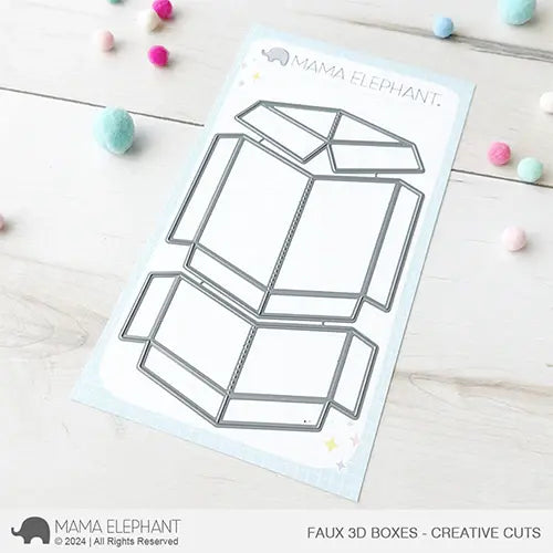 The Mama Elephant Faux 3D Boxes Creative Cuts is a stand-alone die set designed to create dimensional boxes.